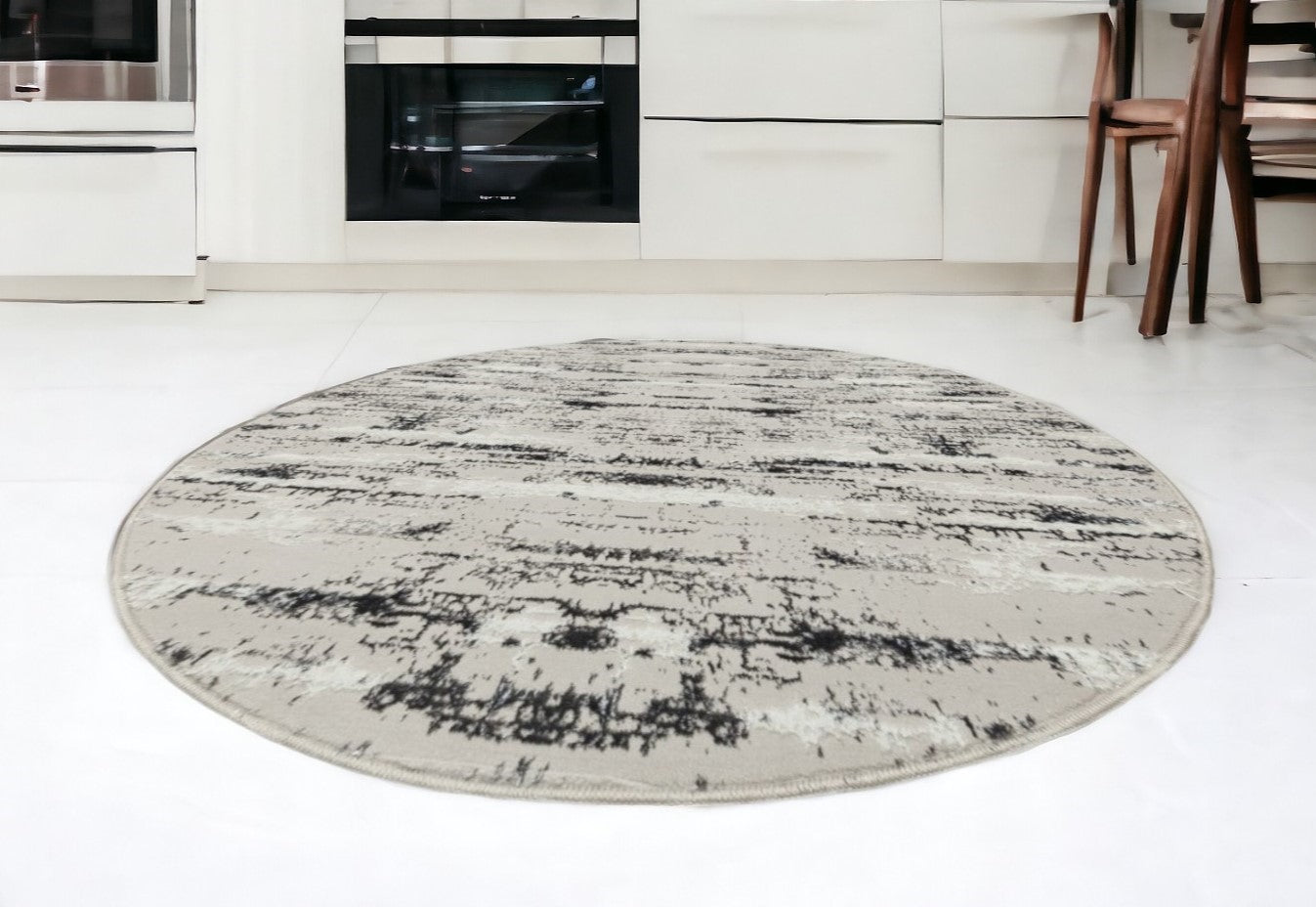 7' Silver Round Abstract Washable Non Skid Area Rug
