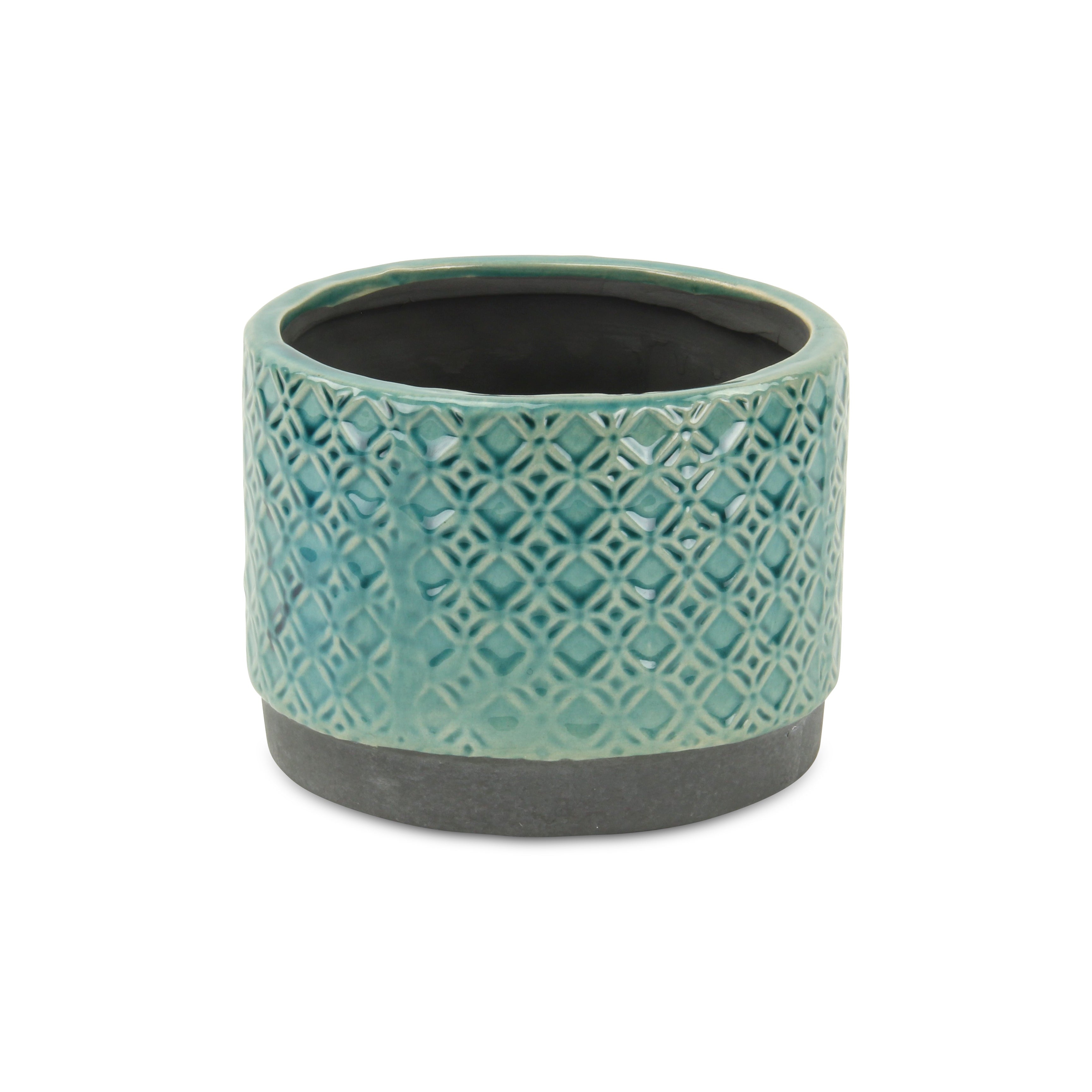 7" Turquoise Geometric Ceramic Indoor Outdoor Round Pot Planter