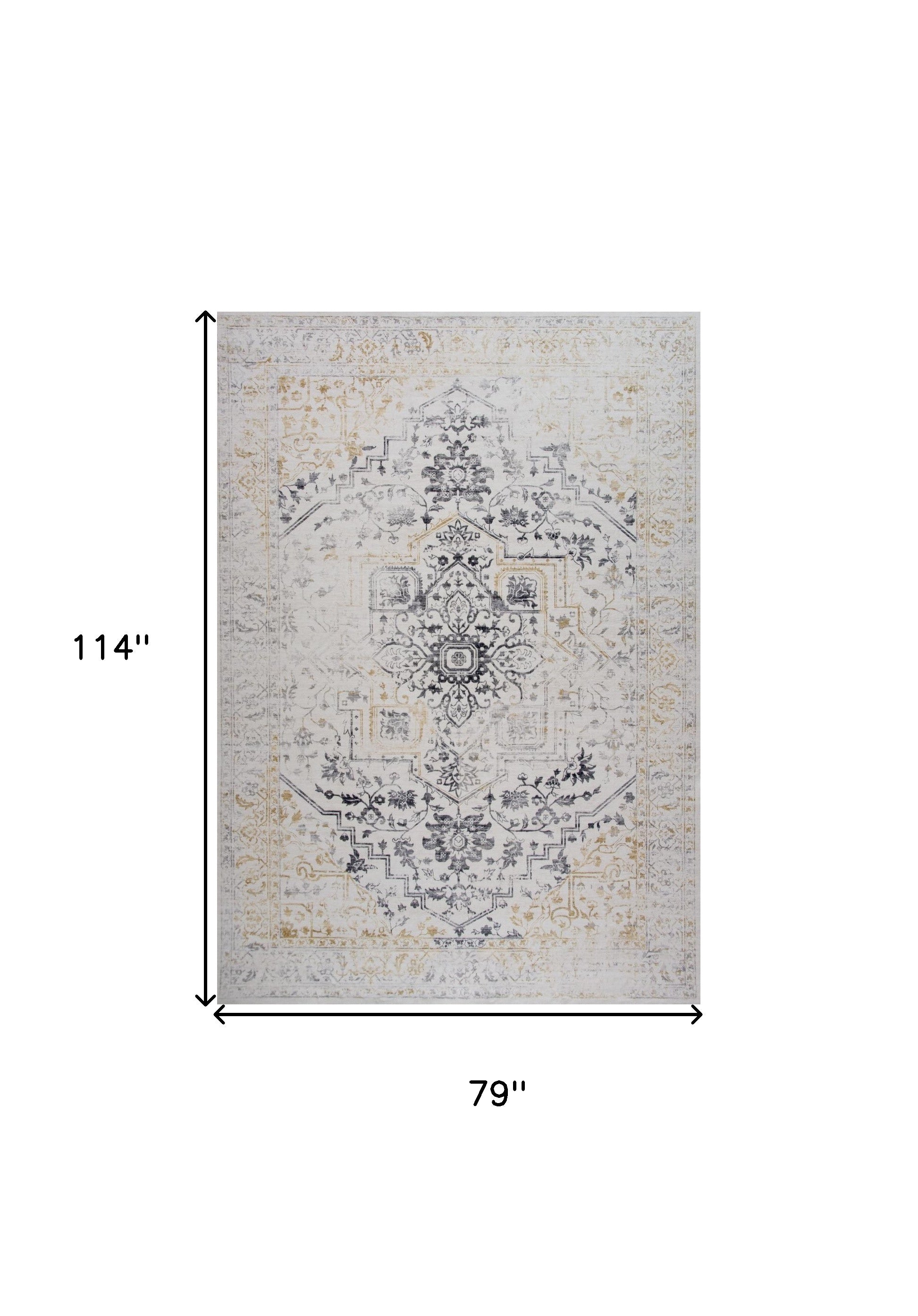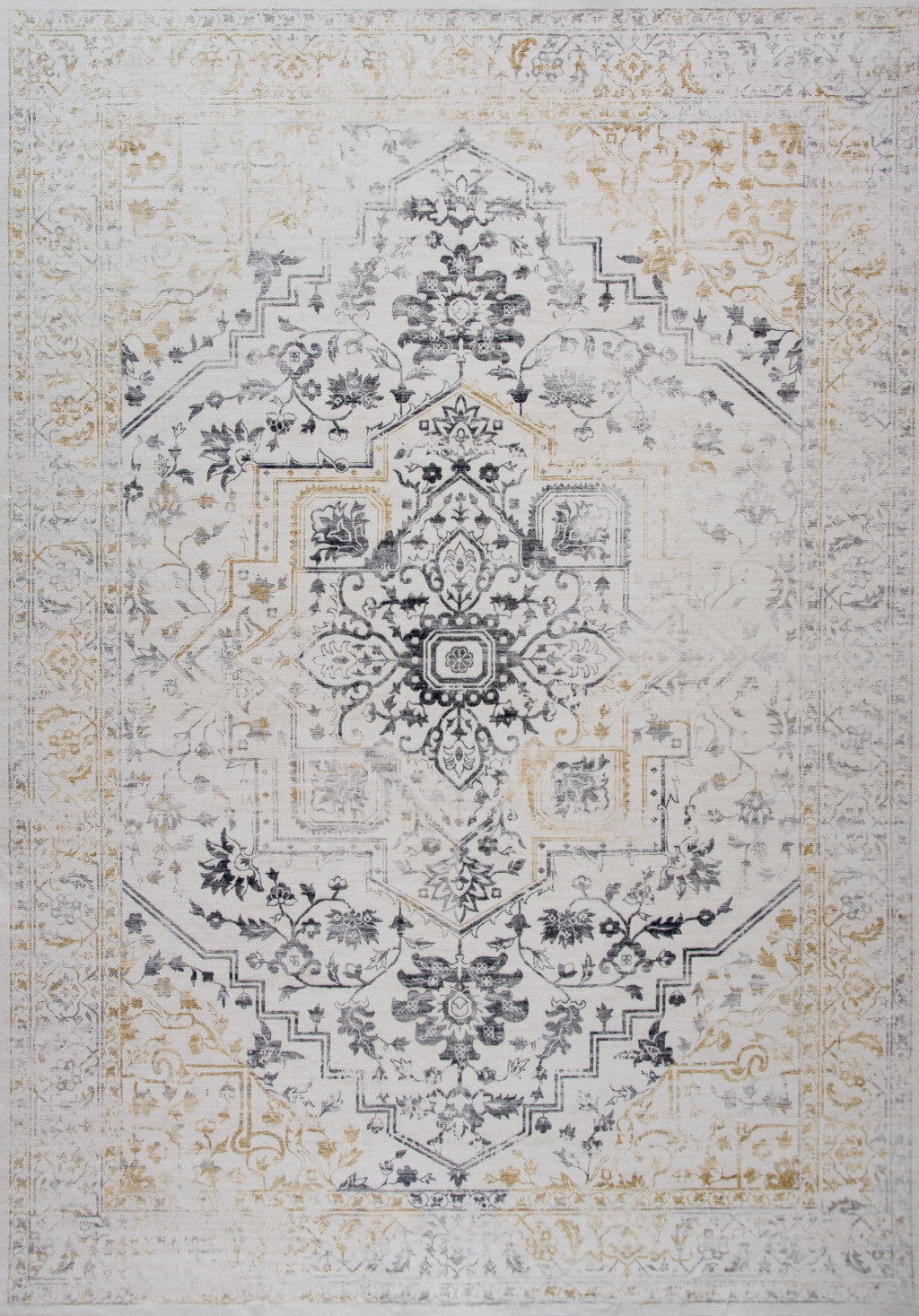 Set an inviting tone in your space with this 7-foot x 10-foot gray and gold oriental area...