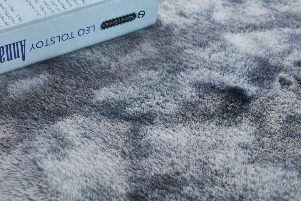7' x 10' Gray and White Faux Fur Abstract Shag Non Skid Area Rug