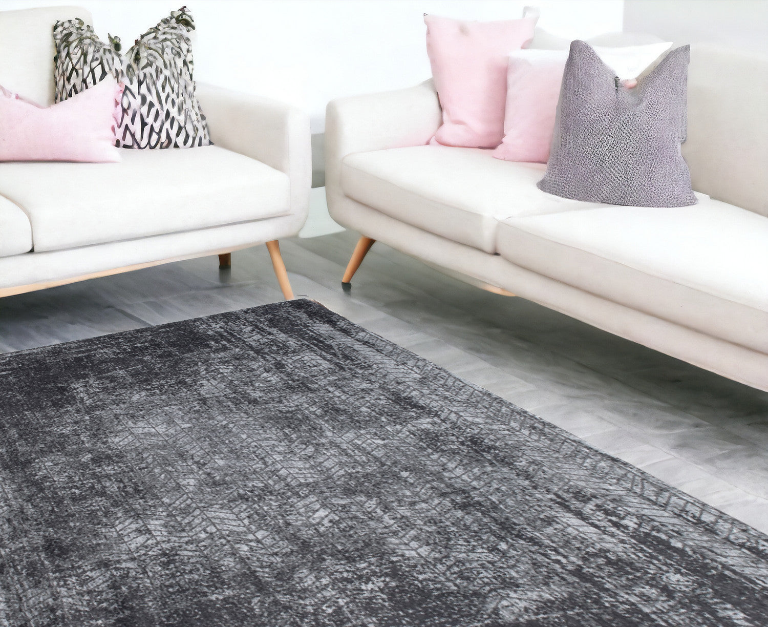 7' x 9' Black and Gray Chevron Non Skid Area Rug