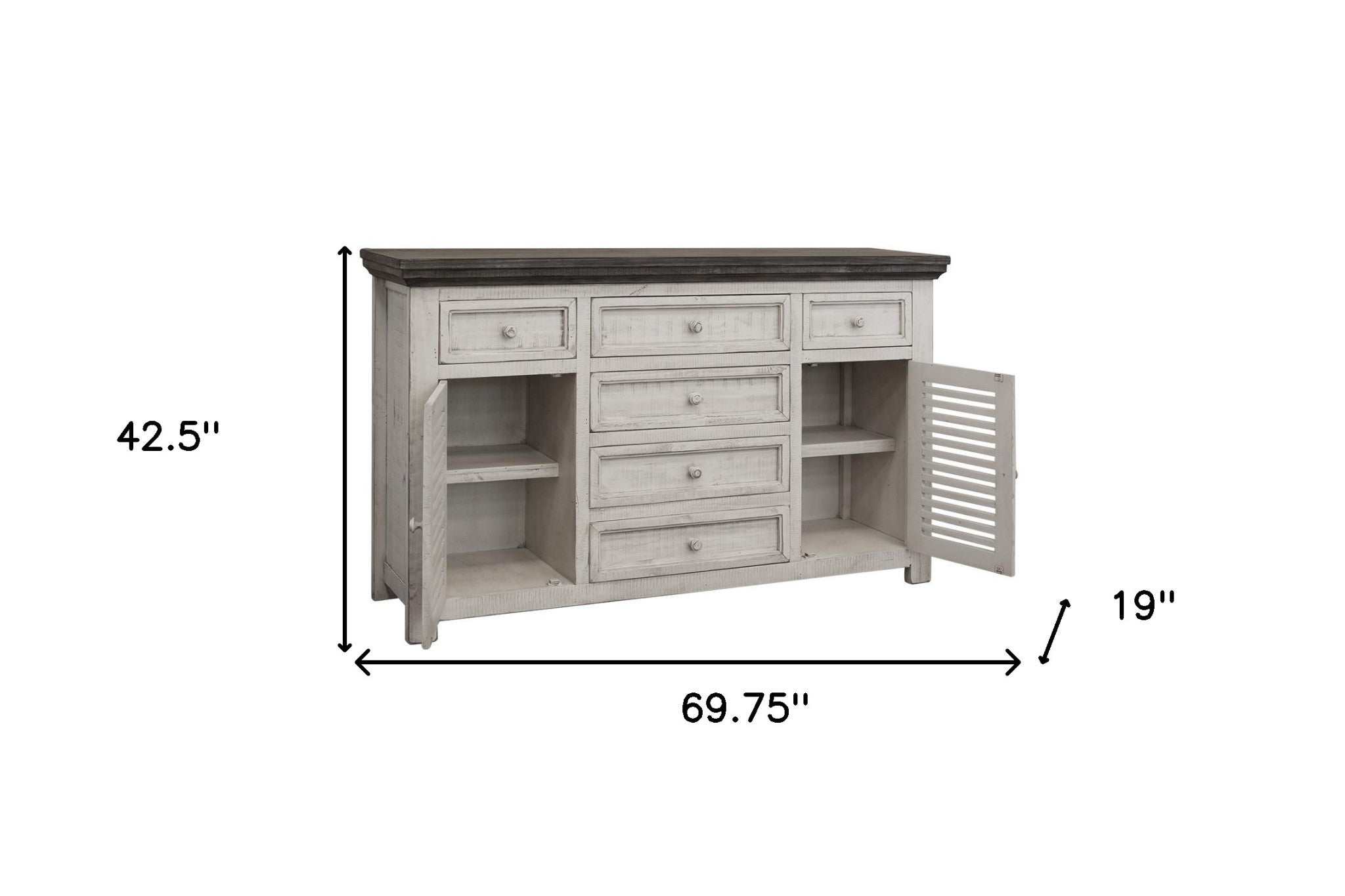 70" Antiqued White Solid and Manufactured Wood Distressed Buffet Table