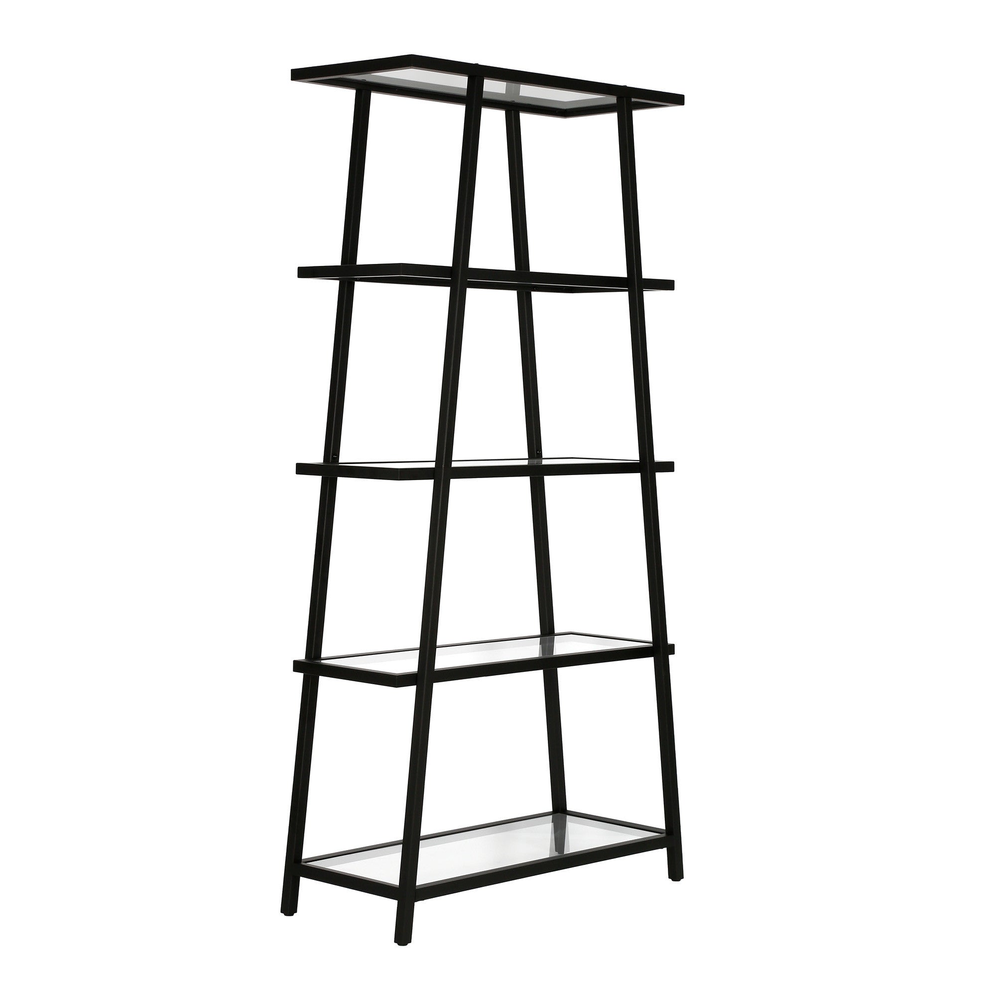 70" Black Metal and Glass Five Tier Etagere Bookcase