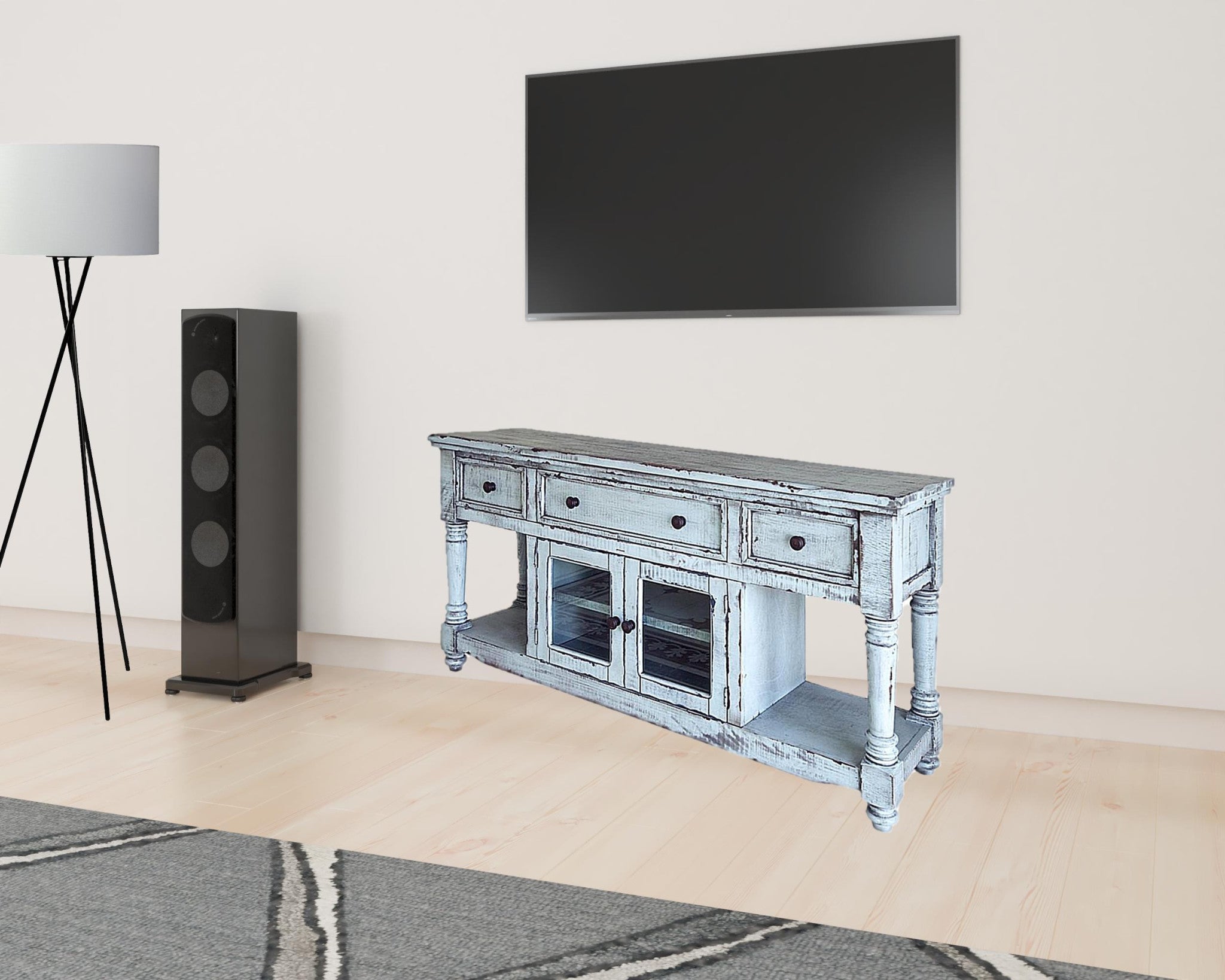70" Blue Solid Wood Open shelving Distressed TV Stand