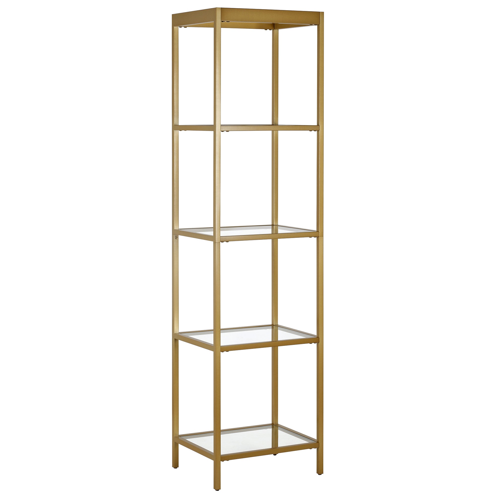 70" Gold Metal and Glass Four Tier Bookcase