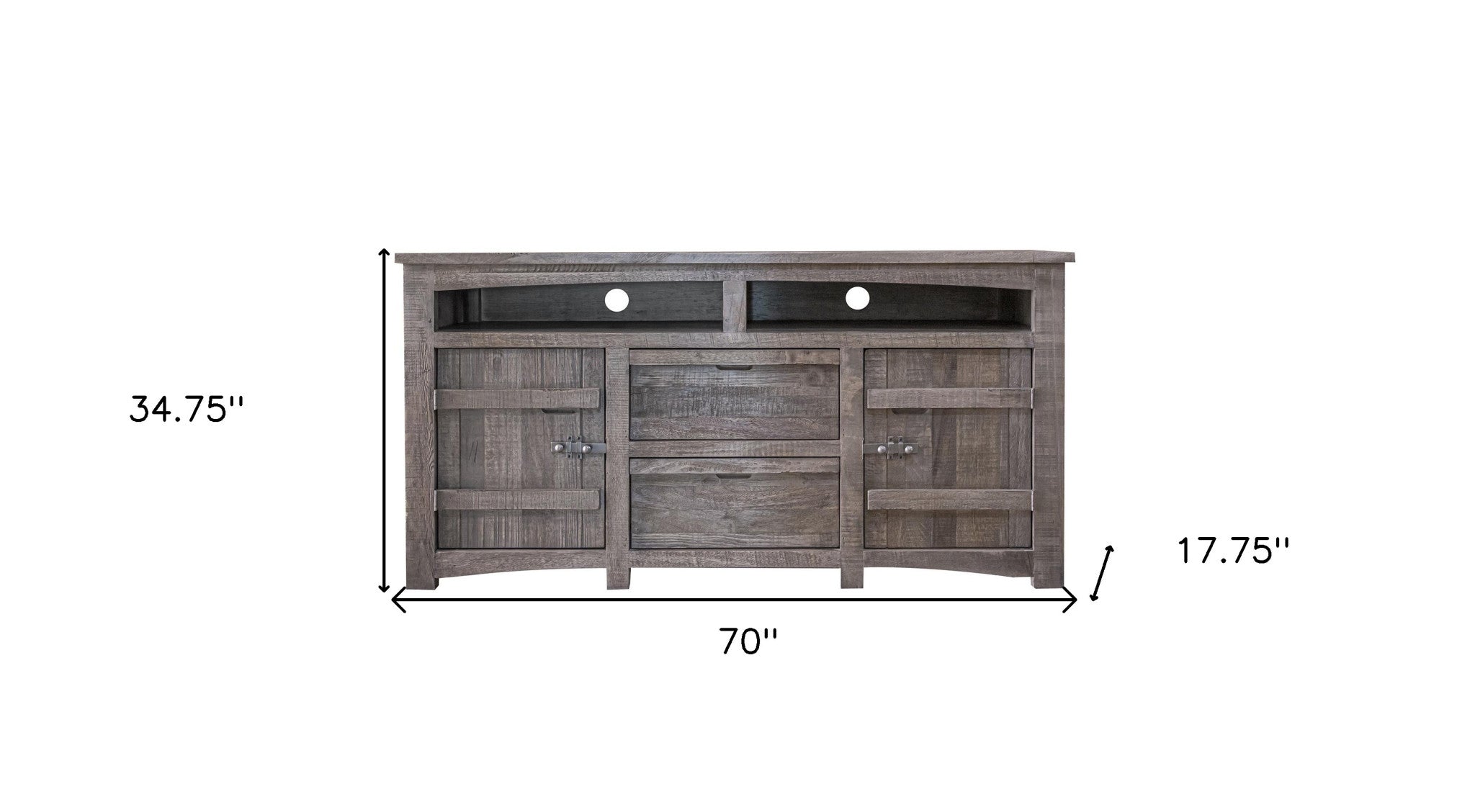 70" Gray Solid Wood Cabinet Enclosed Storage Distressed TV Stand