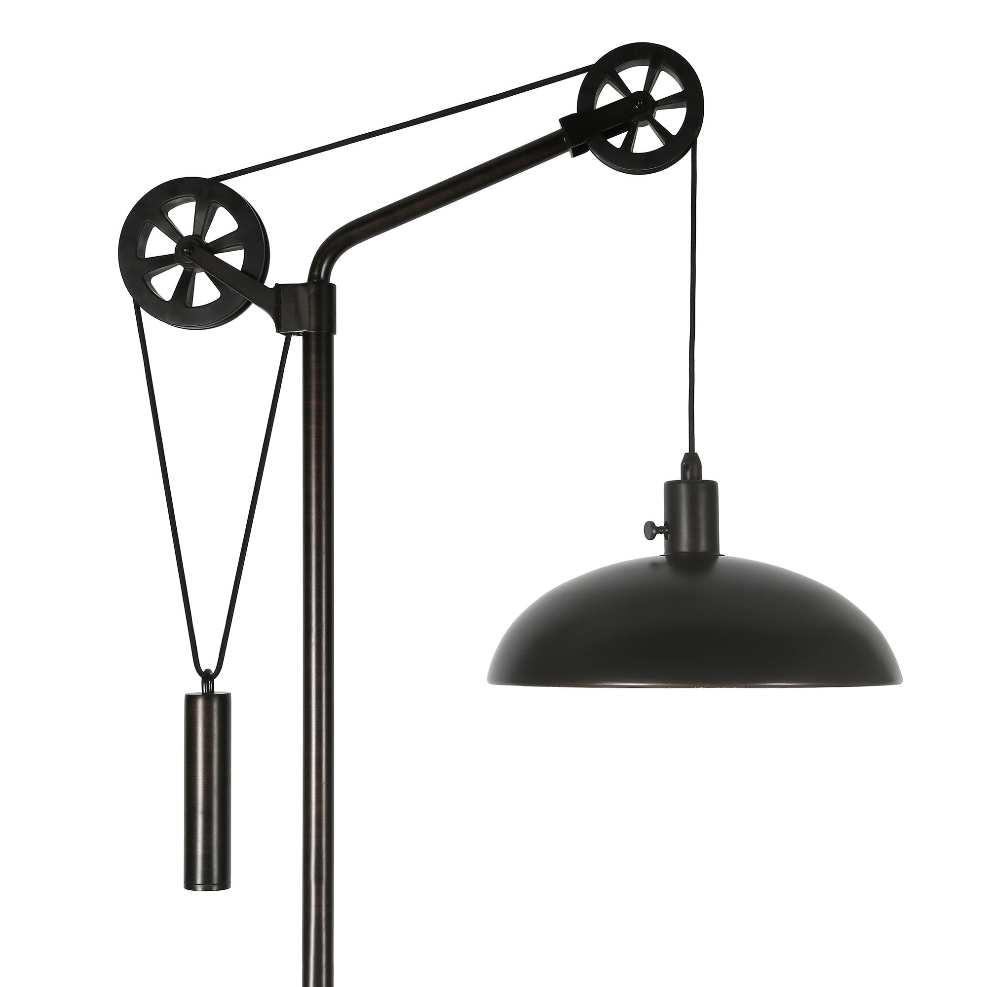 72" Black Adjustable Reading Floor Lamp With Black Metal Dome Shade