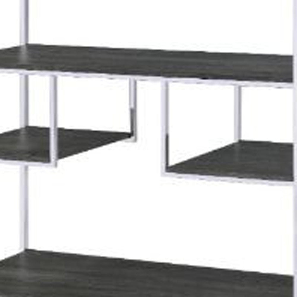 72" Gray and Silver Metal Seven Tier Geometric Bookcase