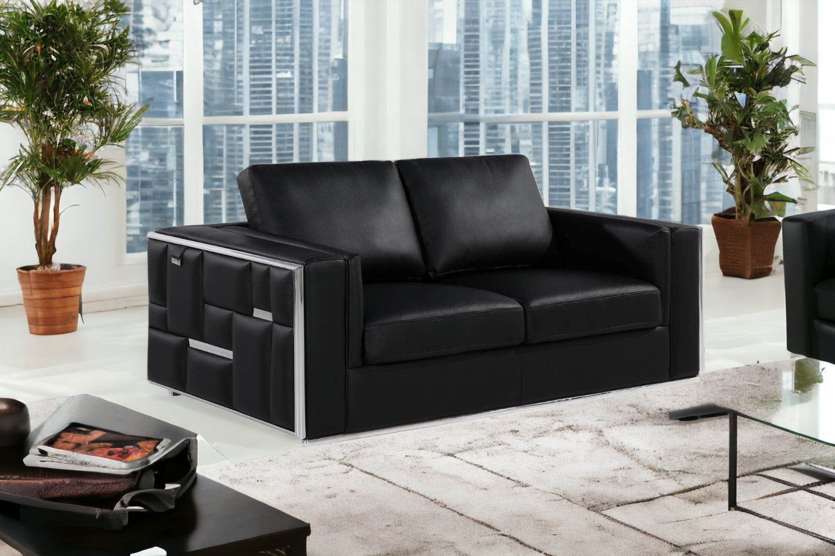 Made of top quality, supple leather, this 73-inch black and silver metallic leather loveseat will be the...