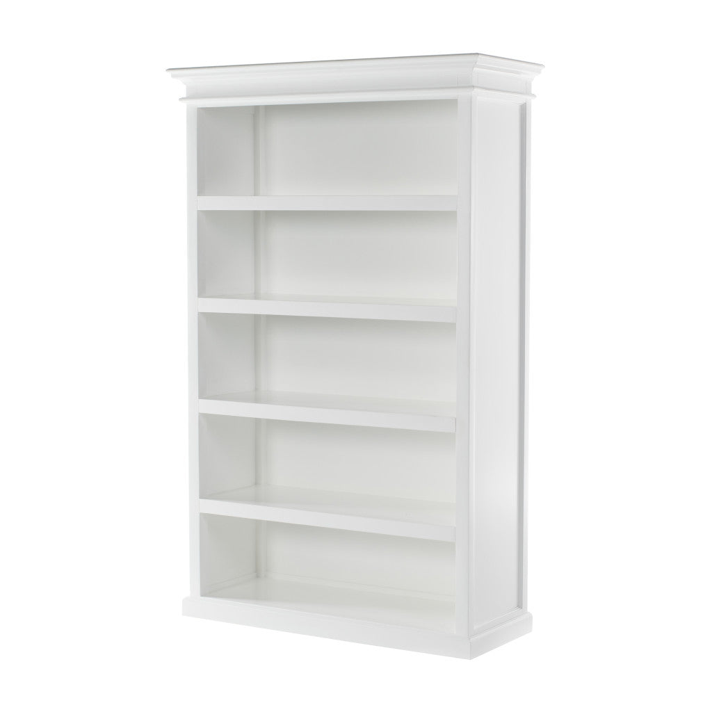 77" Antiqued White Solid Wood Five Tier Bookcase