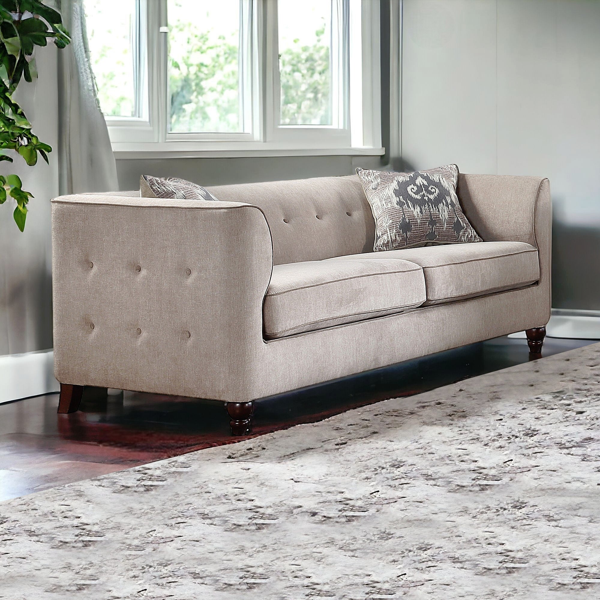 78" Tan Velvet And Black Sofa With Two Toss Pillows
