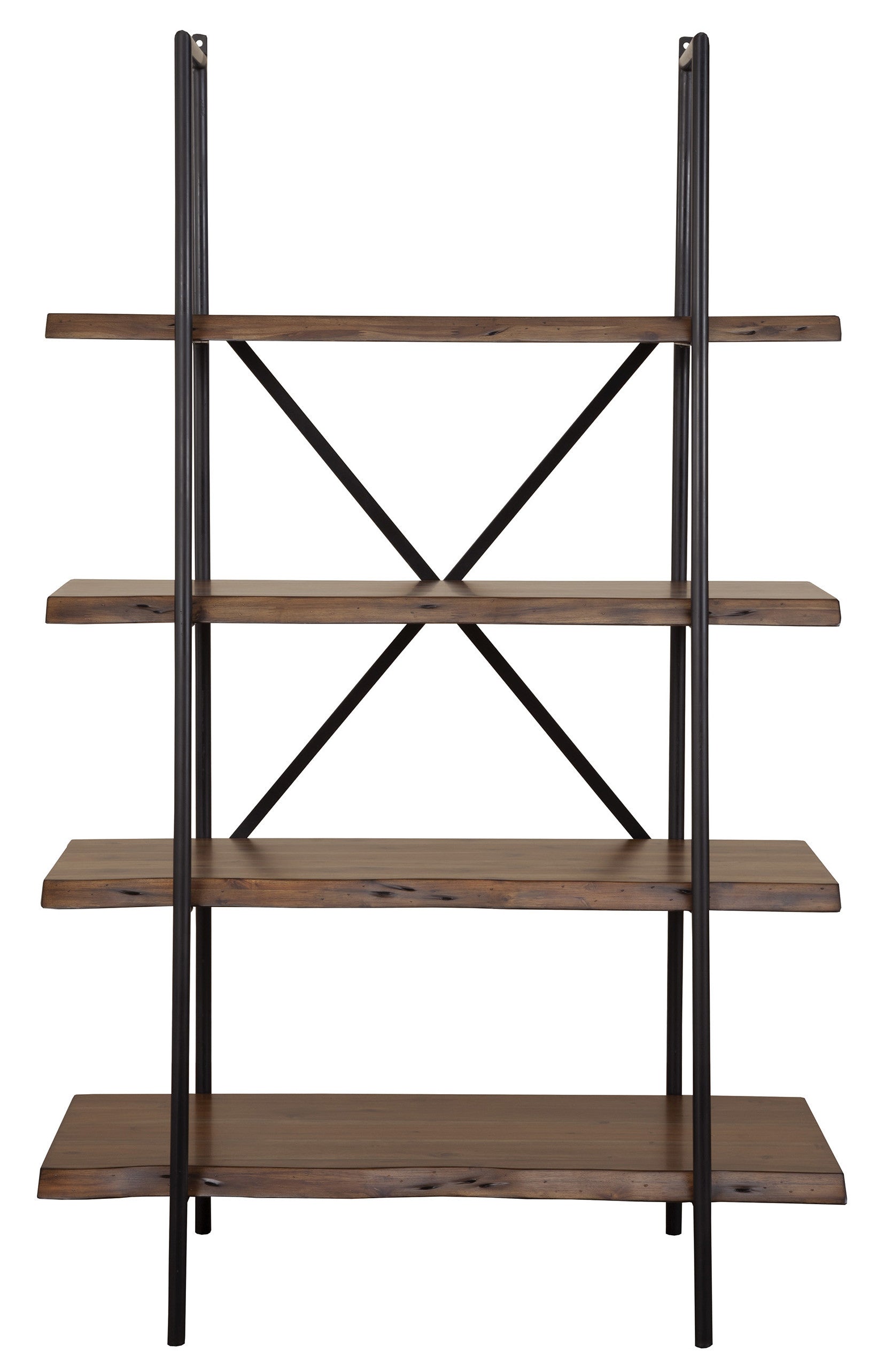 79" Brown and Black Acacia Live Edge Vertical Step Open Back Bookcase