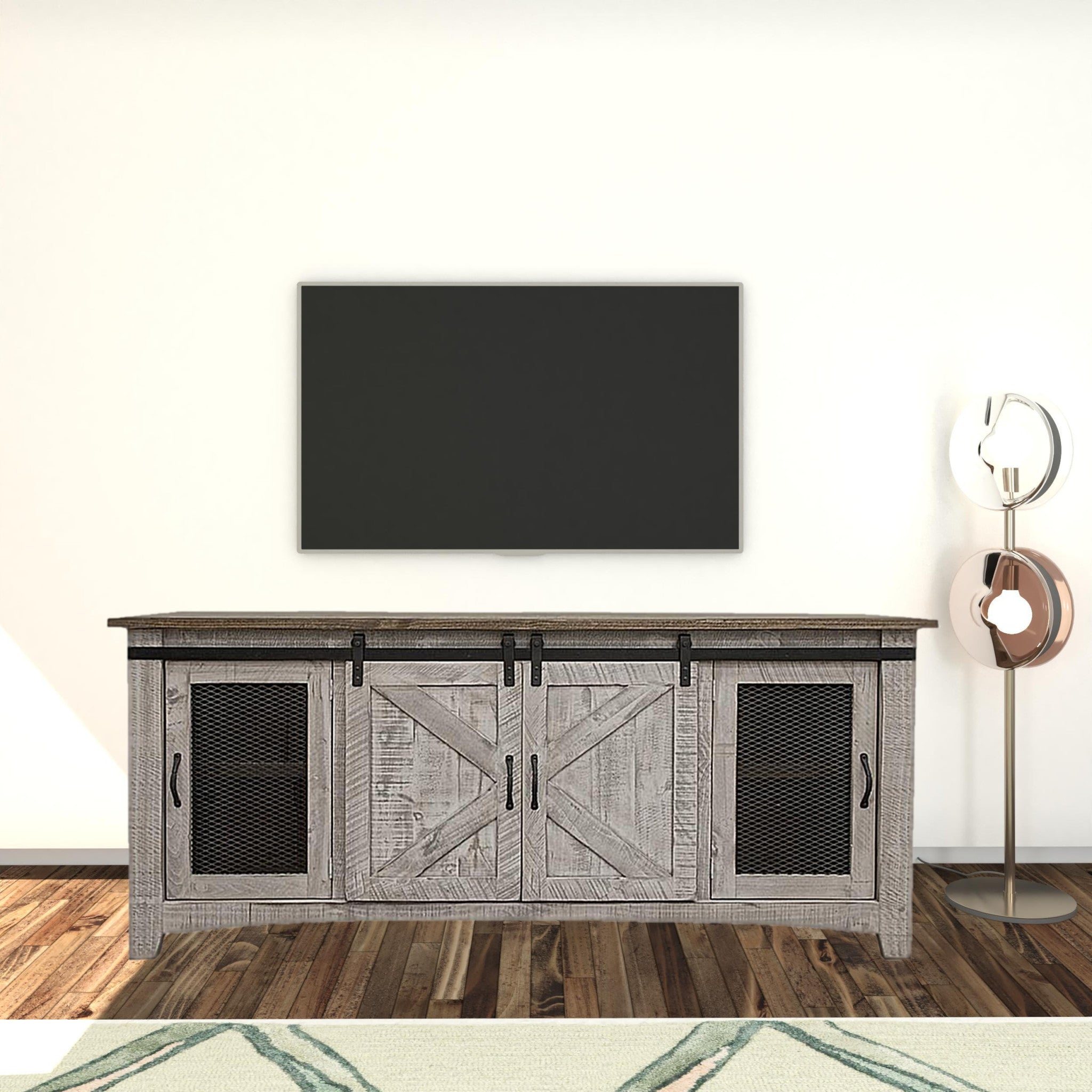 79" Gray Solid Wood Cabinet Enclosed Storage Distressed TV Stand