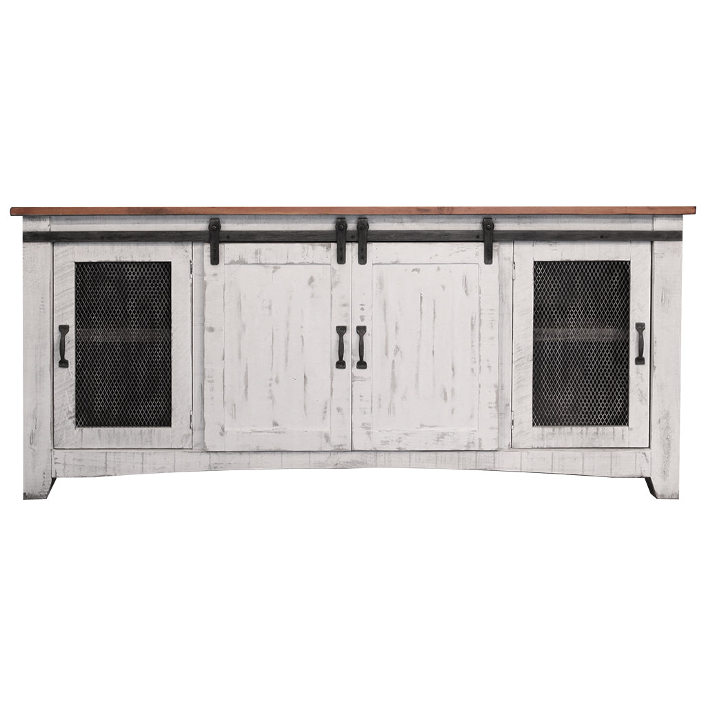 79" White Solid Wood Cabinet Enclosed Storage Distressed TV Stand