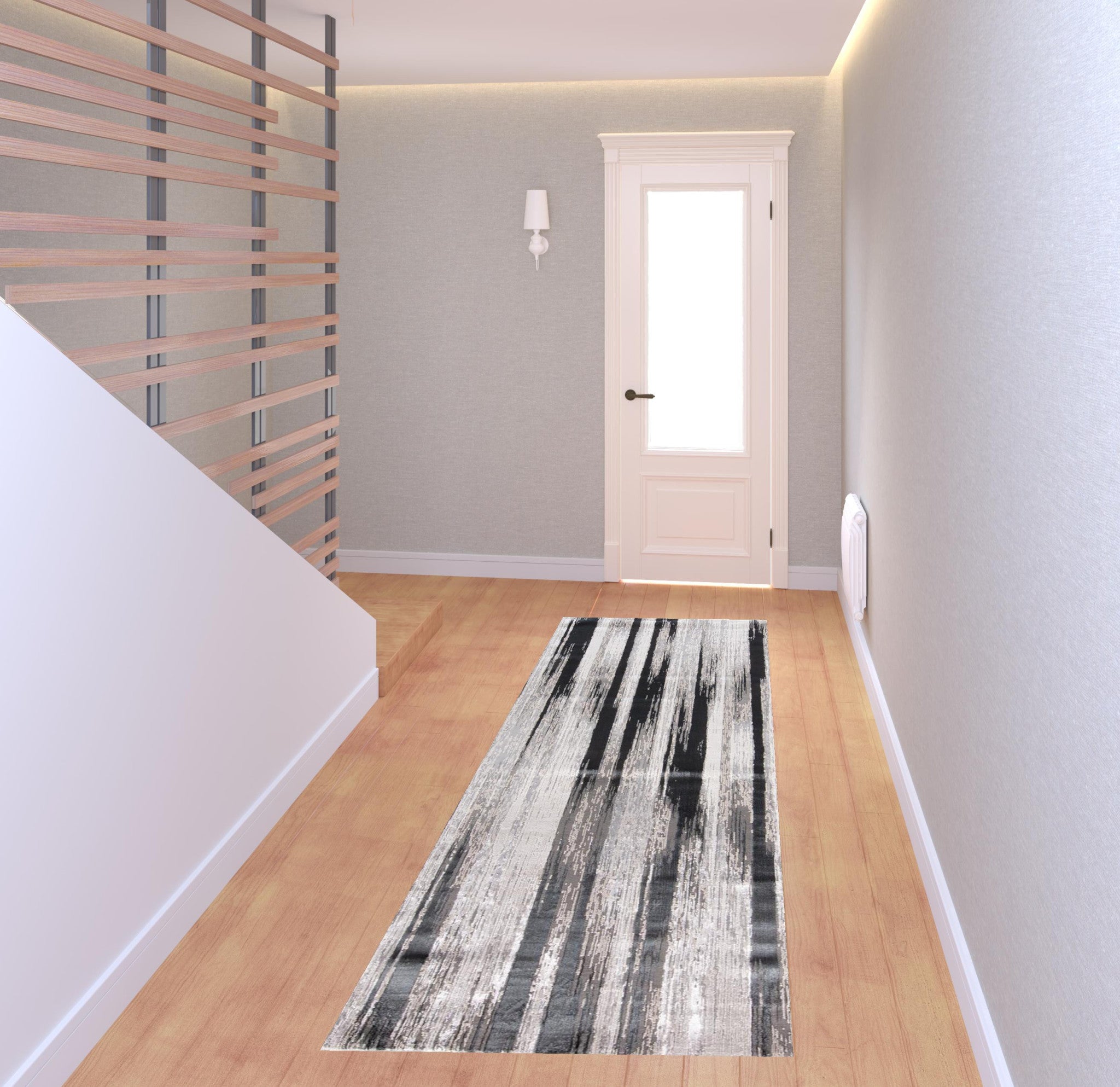 Add some artistry to your room with this 8-foot beige and black abstract power loom runner rug....