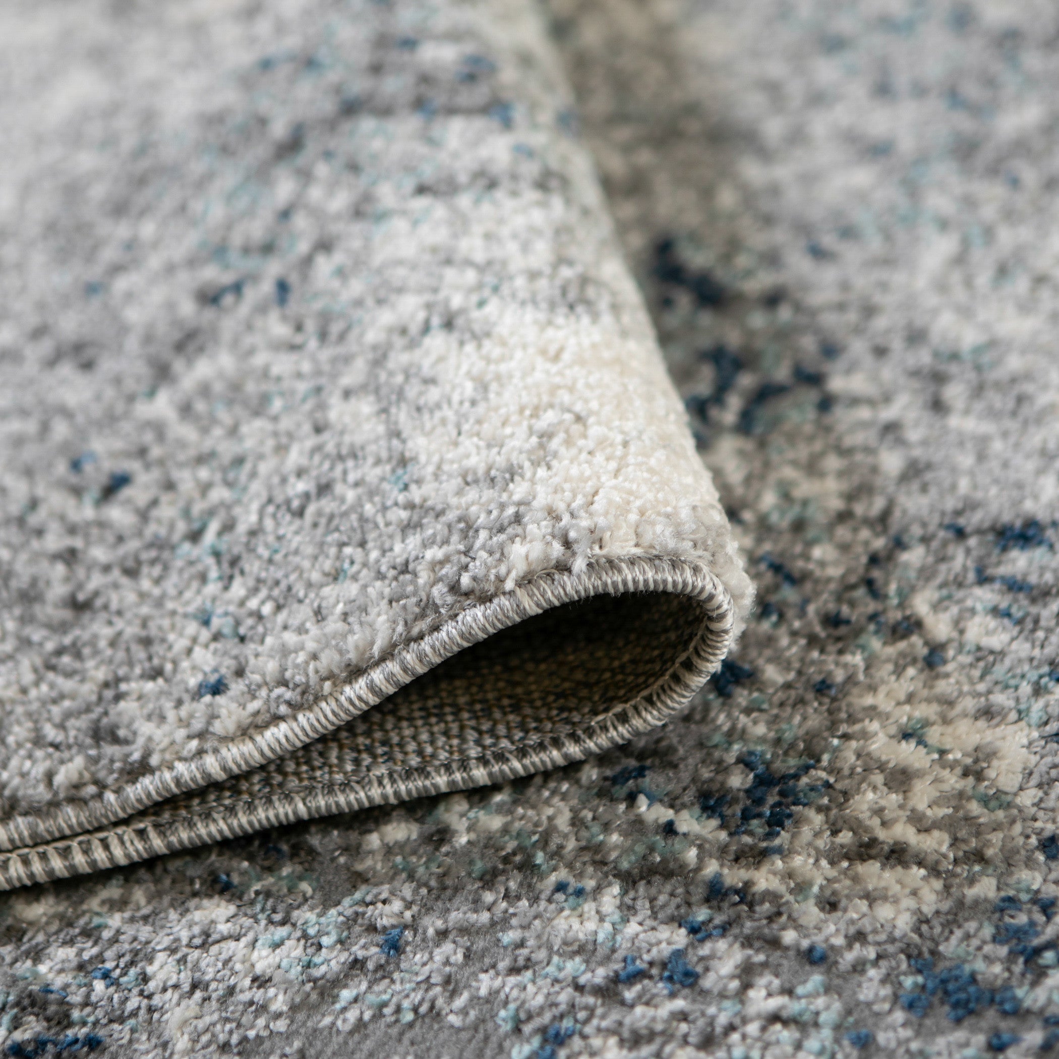 8' Blue and Gray Abstract Power Loom Runner Rug