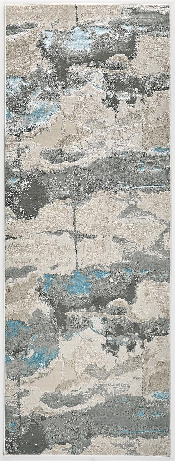 Add some artistry to your room with this 8-foot blue and gray abstract power loom runner rug....