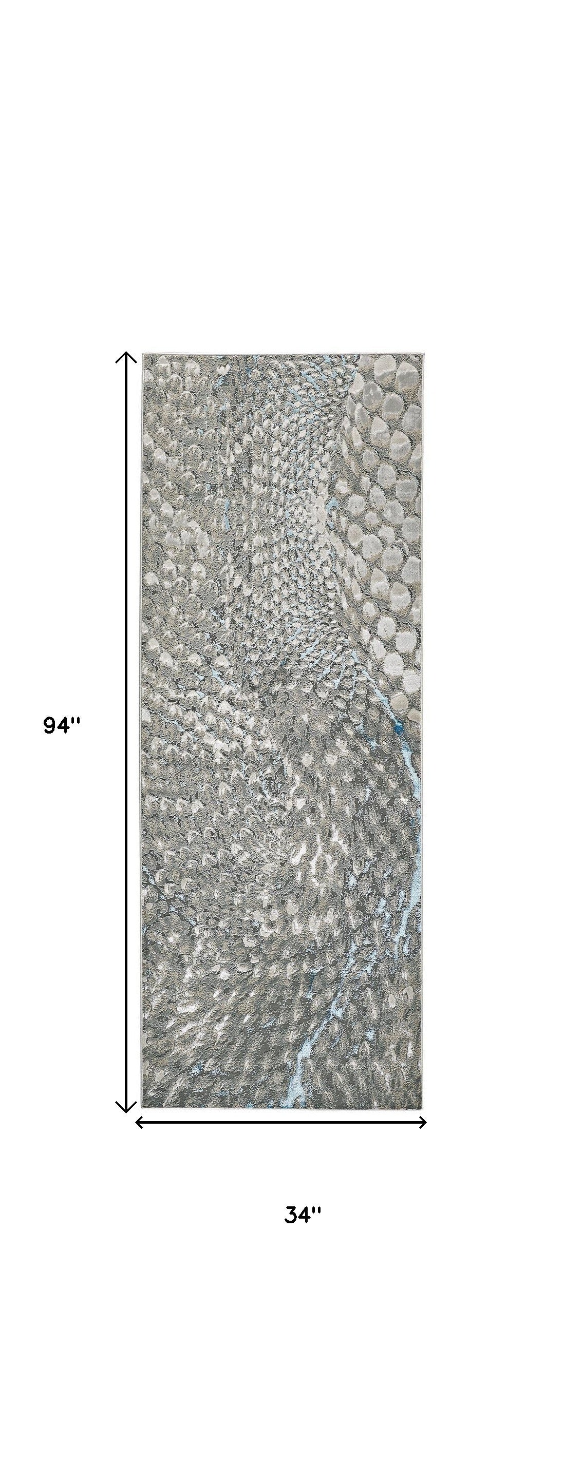 8' Blue and Gray Abstract Power Loom Runner Rug