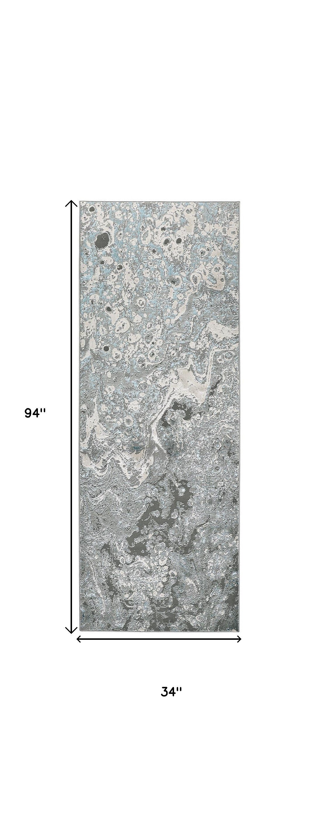 8' Blue and Gray Abstract Power Loom Runner Rug