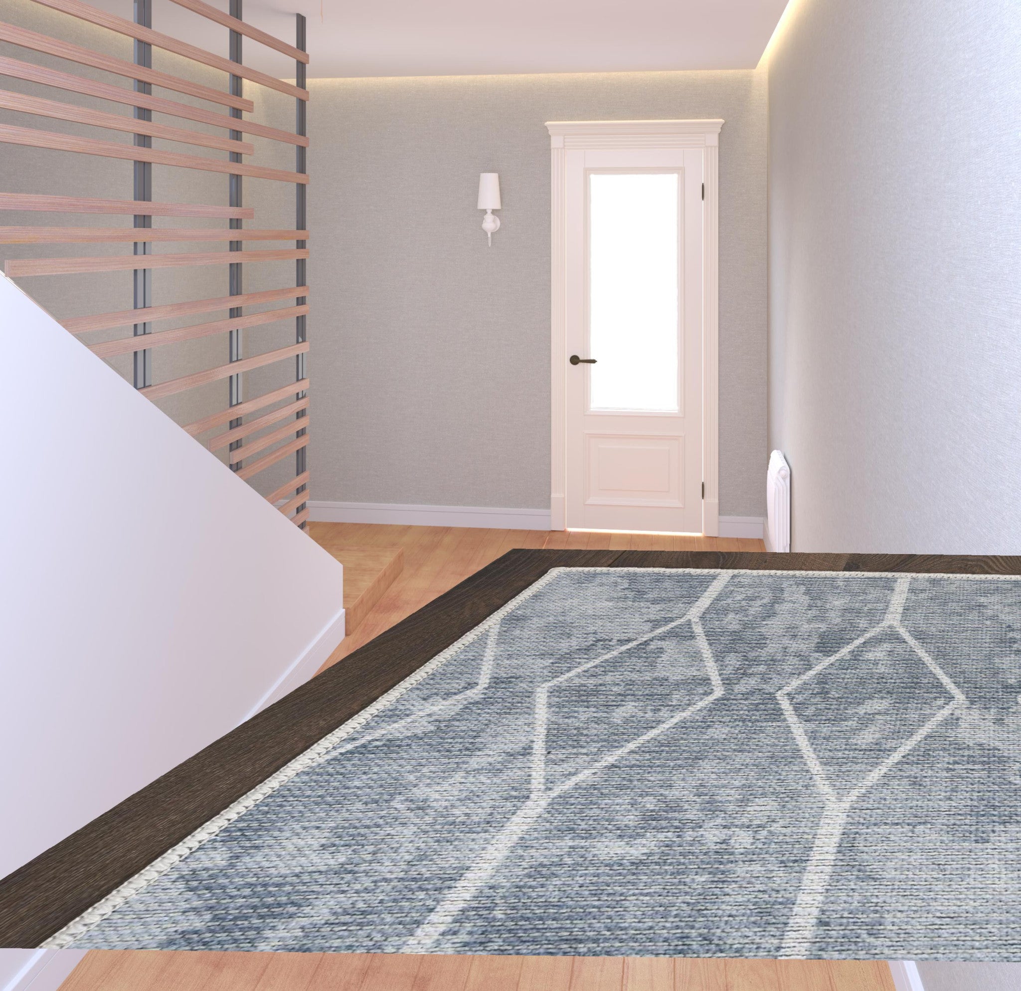 Set an inviting tone in your space with this 8-foot blue and gray geometric power loom washable...