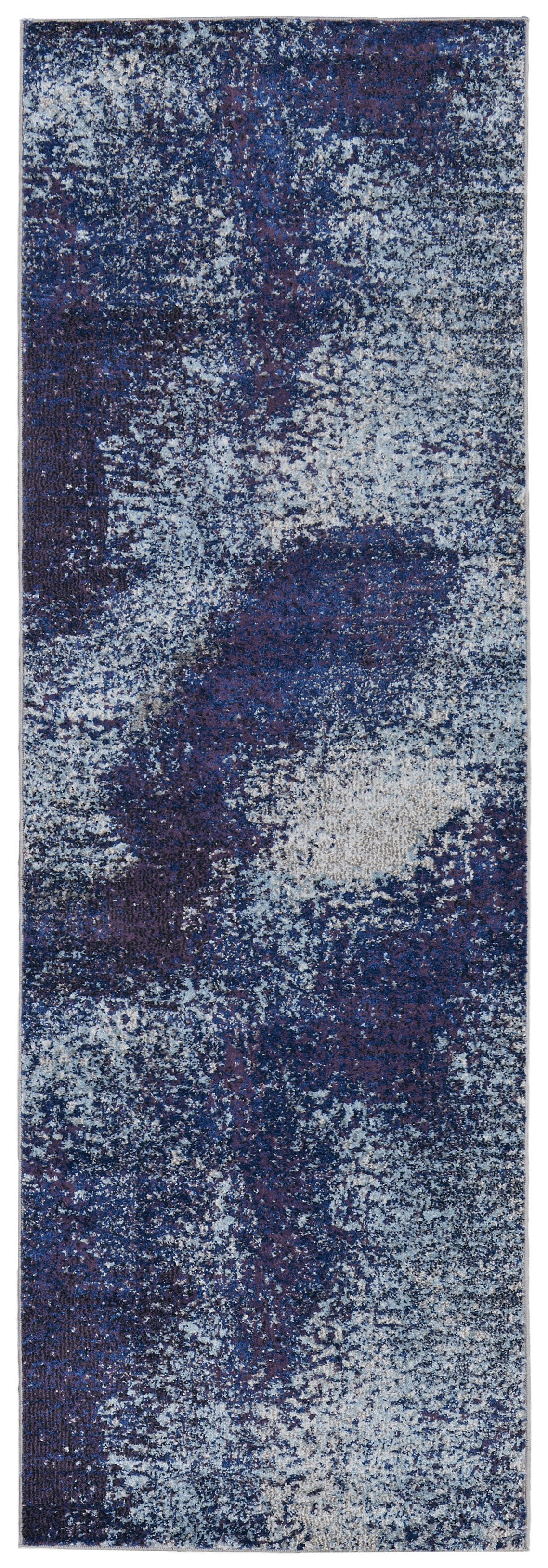 Add some artistry to your room with this 8-foot blue and purple abstract power loom runner rug....