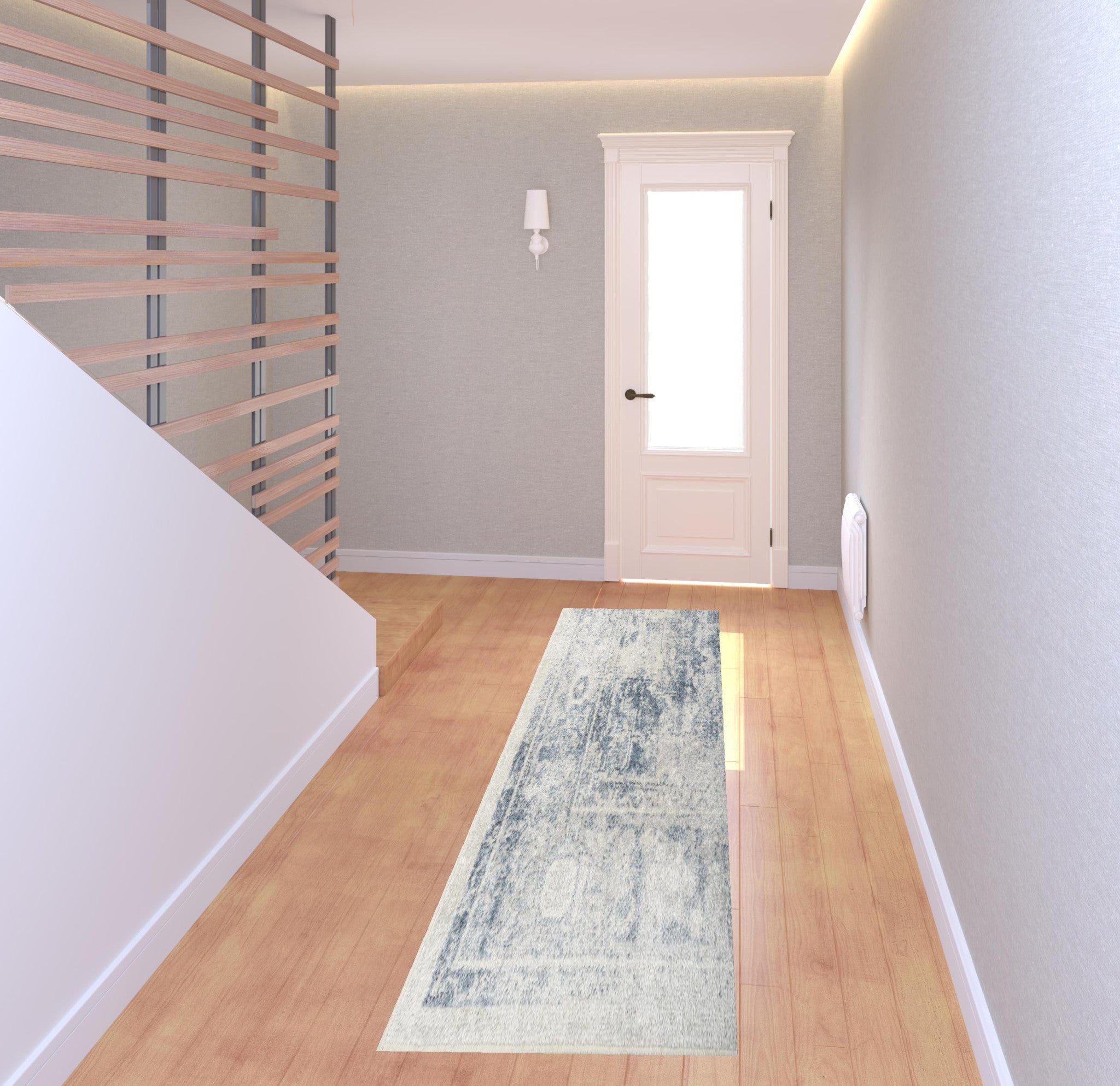 Add some artistry to your room with this 8' blue oriental power loom distressed washable runner rug....