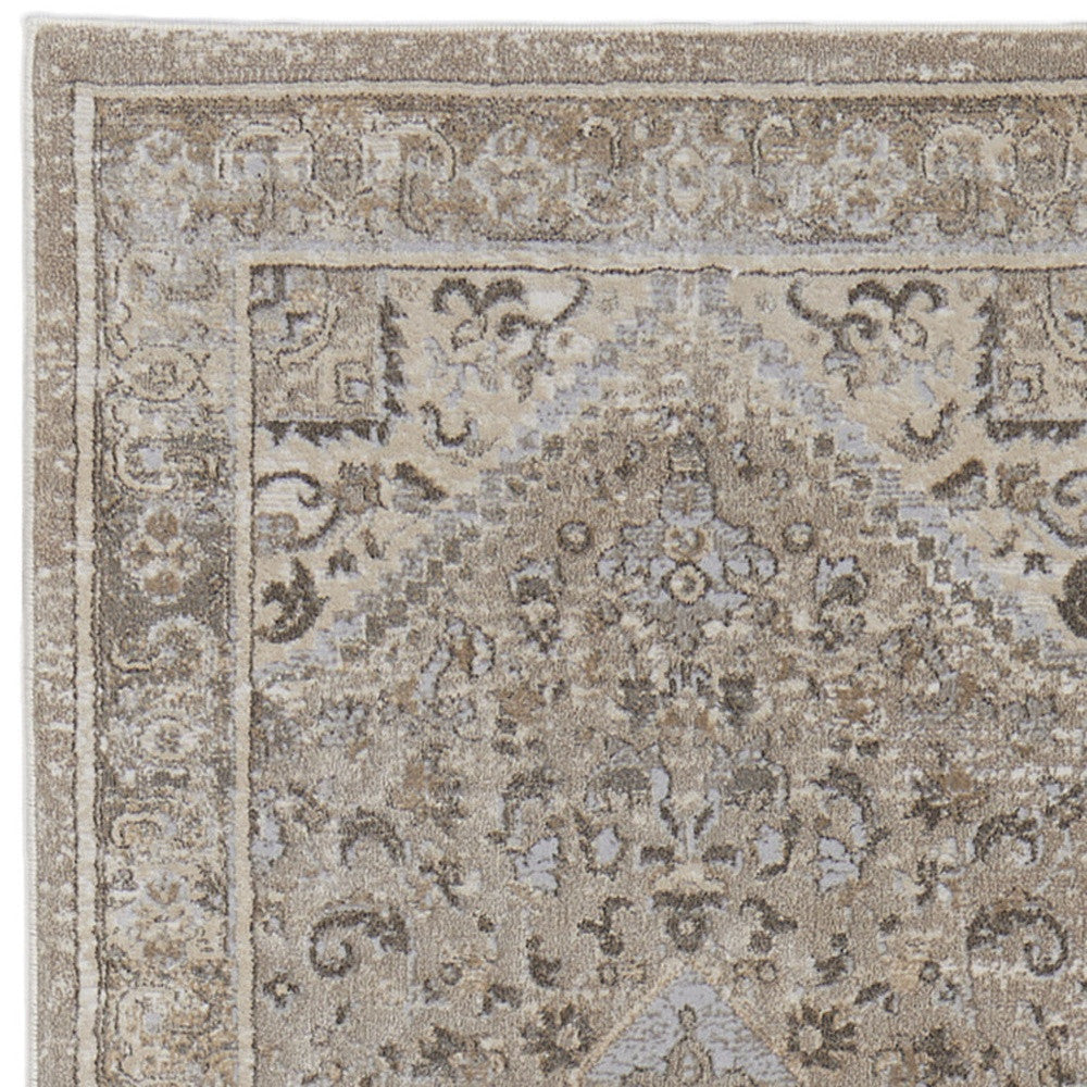 8' Brown and Ivory Medallion Power Loom Distressed Runner Rug