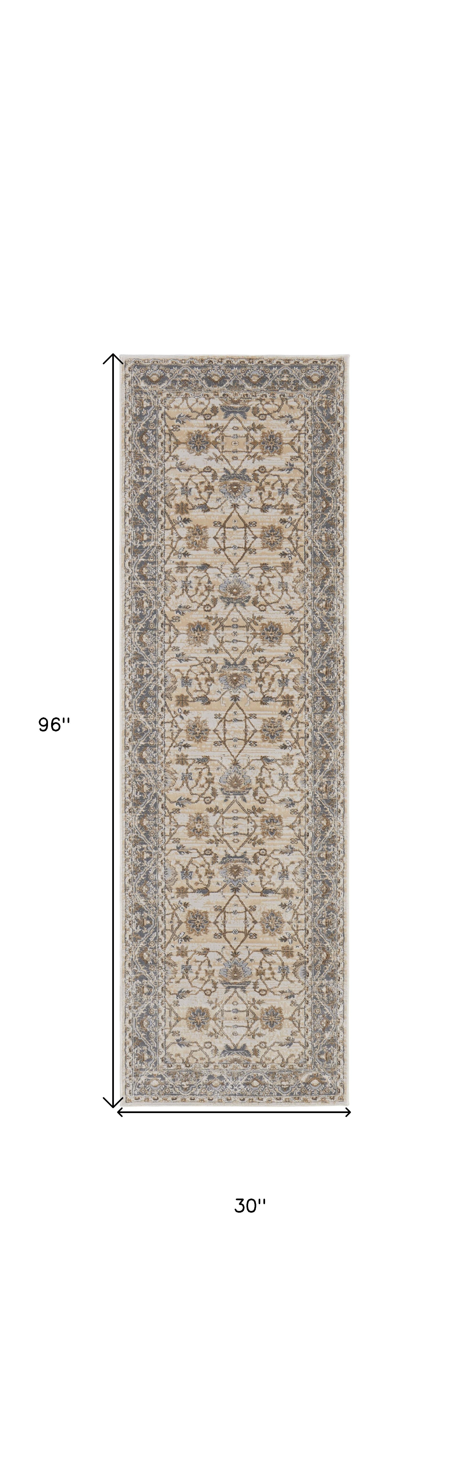 8' Brown and Ivory Oriental Power Loom Distressed Runner Rug