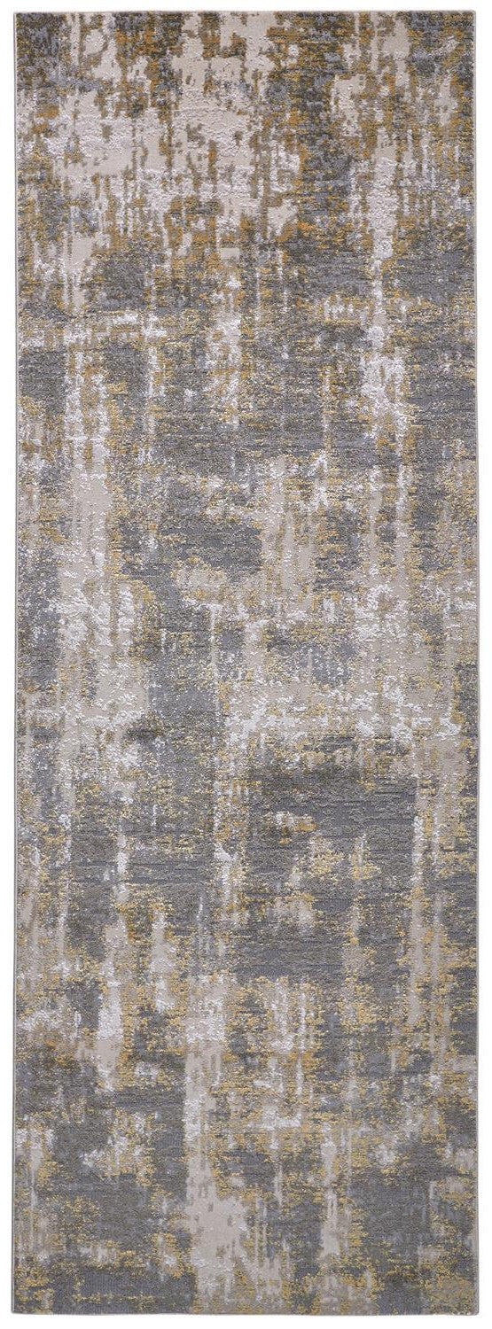 Add some artistry to your room with this 8-foot gray and gold abstract distressed runner rug. This...
