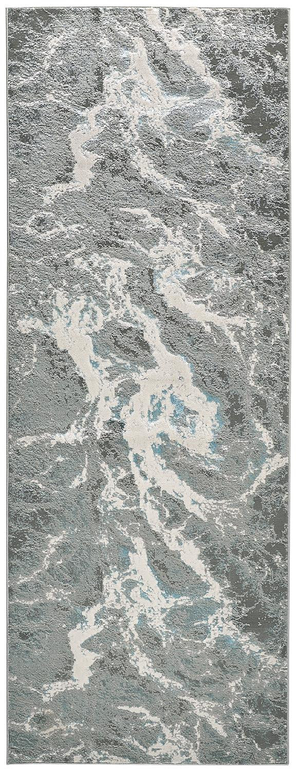 8' Gray and Ivory Abstract Power Loom Runner Rug