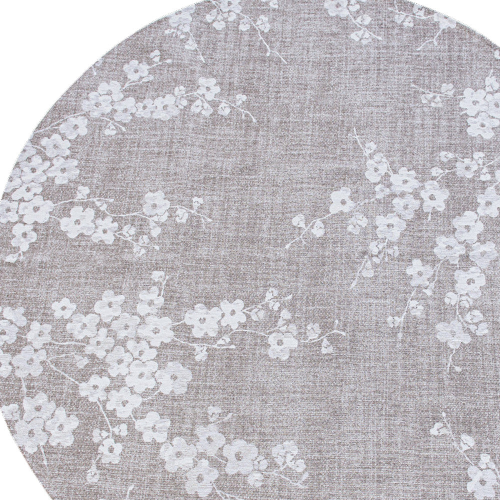8' Gray and White Round Oriental Non Skid Area Rug