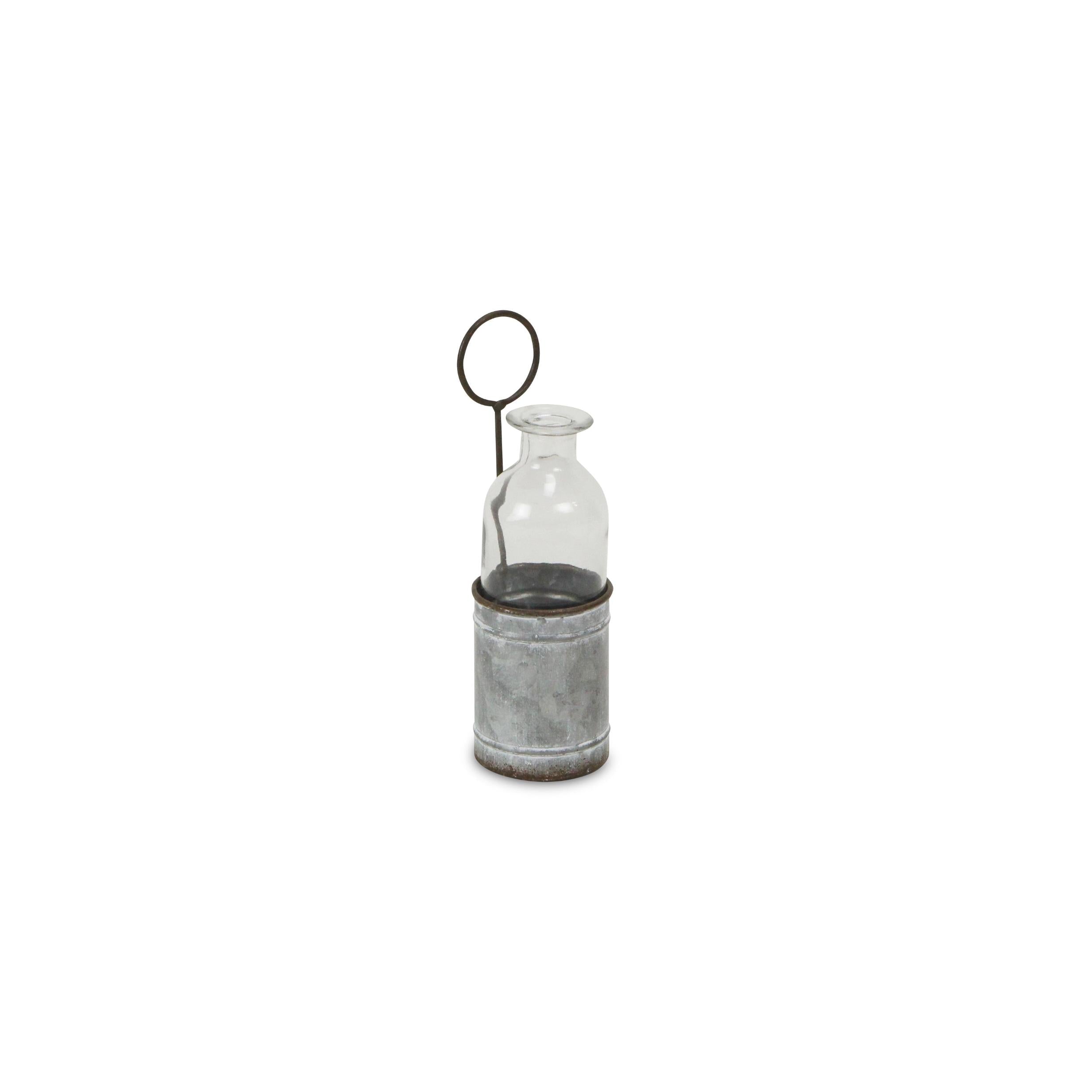 Unique and decorative, this 8" gray galvanized metal and glass jar holder will leave a lasting impression....