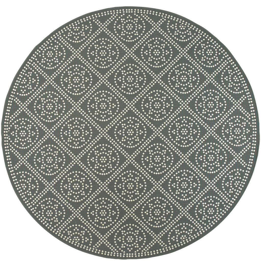 8' Grey Round Geometric Stain Resistant Indoor Outdoor Area Rug
