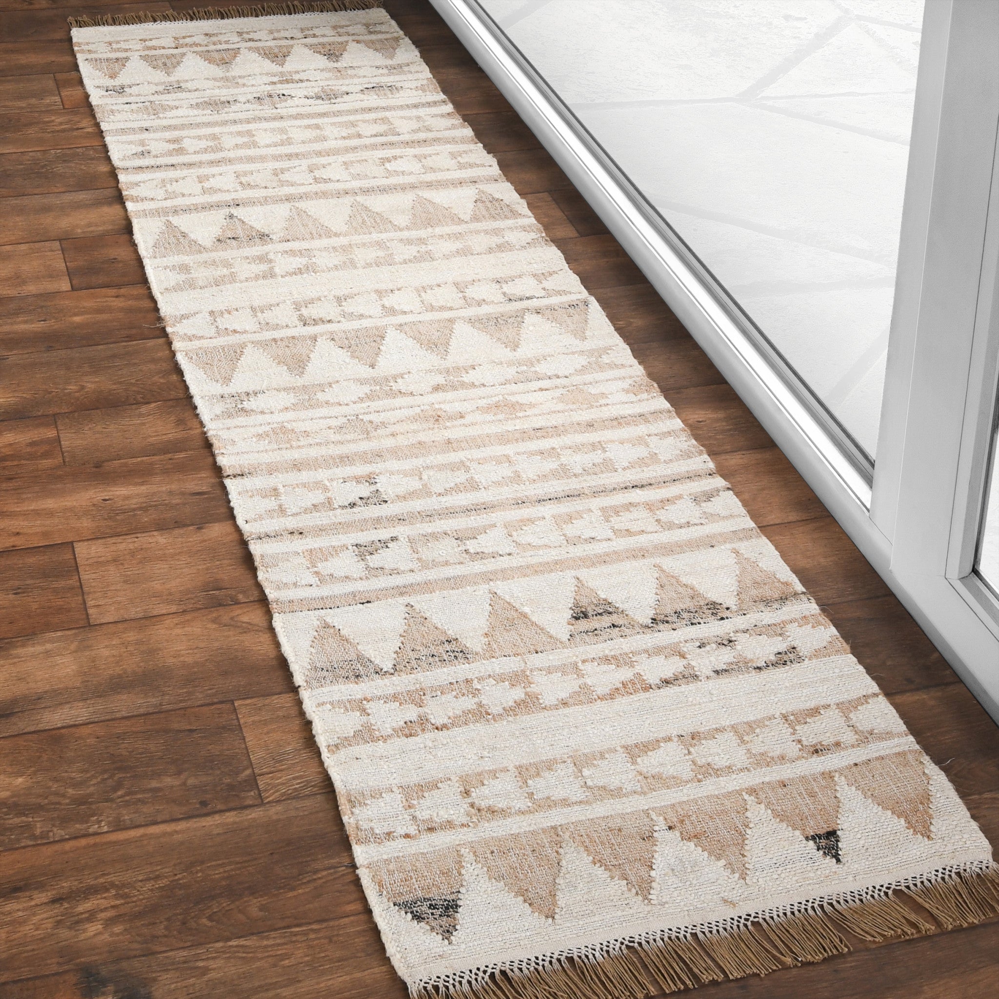 Add some artistry to your room with this 8-foot natural and ivory southwestern hand woven distressed runner...