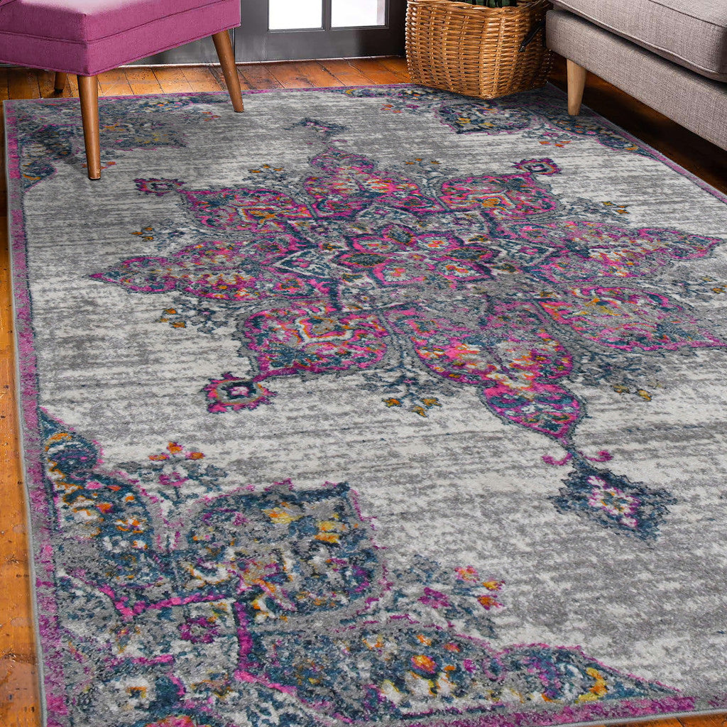 Add great coloration and comfortable texture to your space with this 8-foot pink medallion power loom runner...
