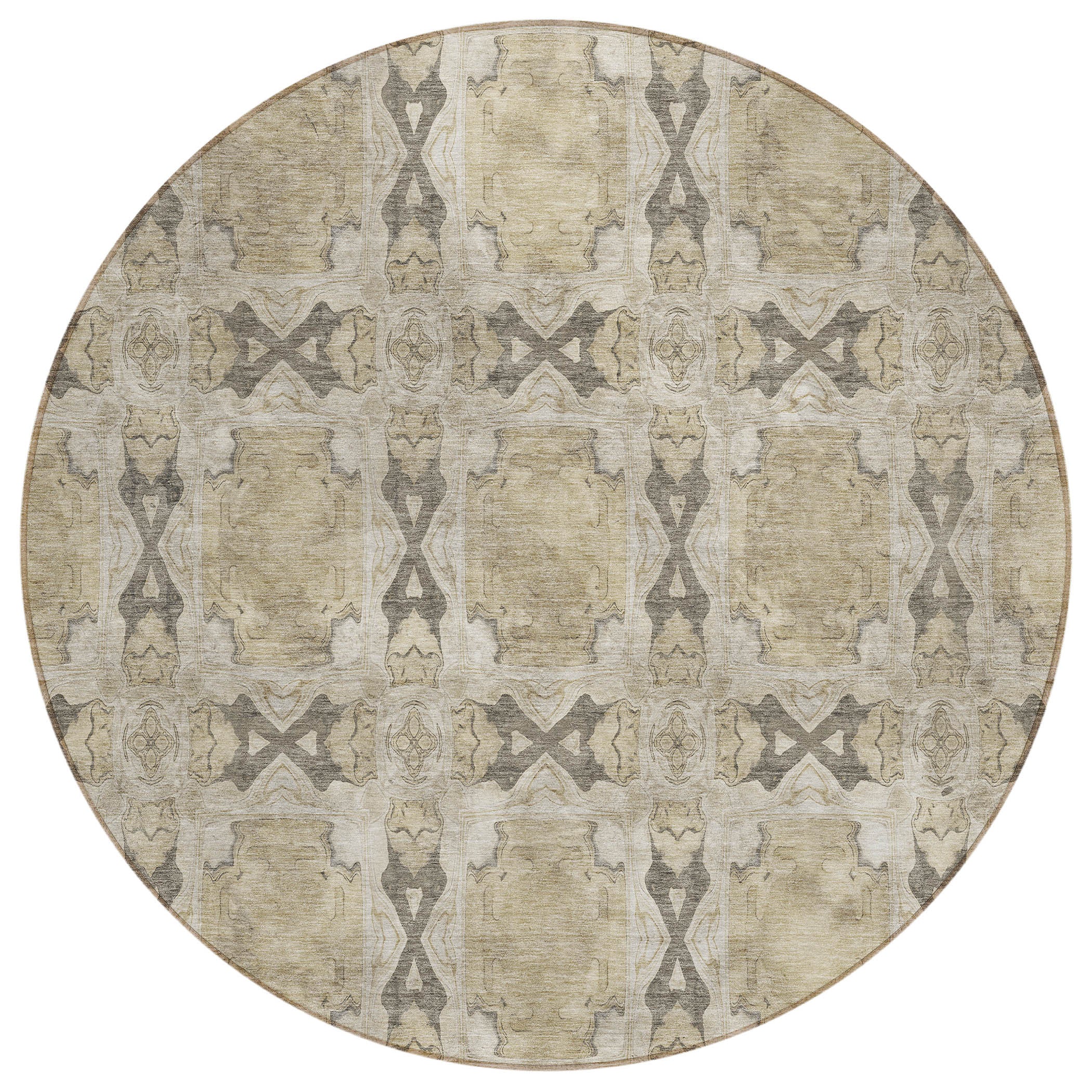 8' Round Beige and Gray Round Floral Medallion Washable Non Skid Indoor Outdoor Area Rug