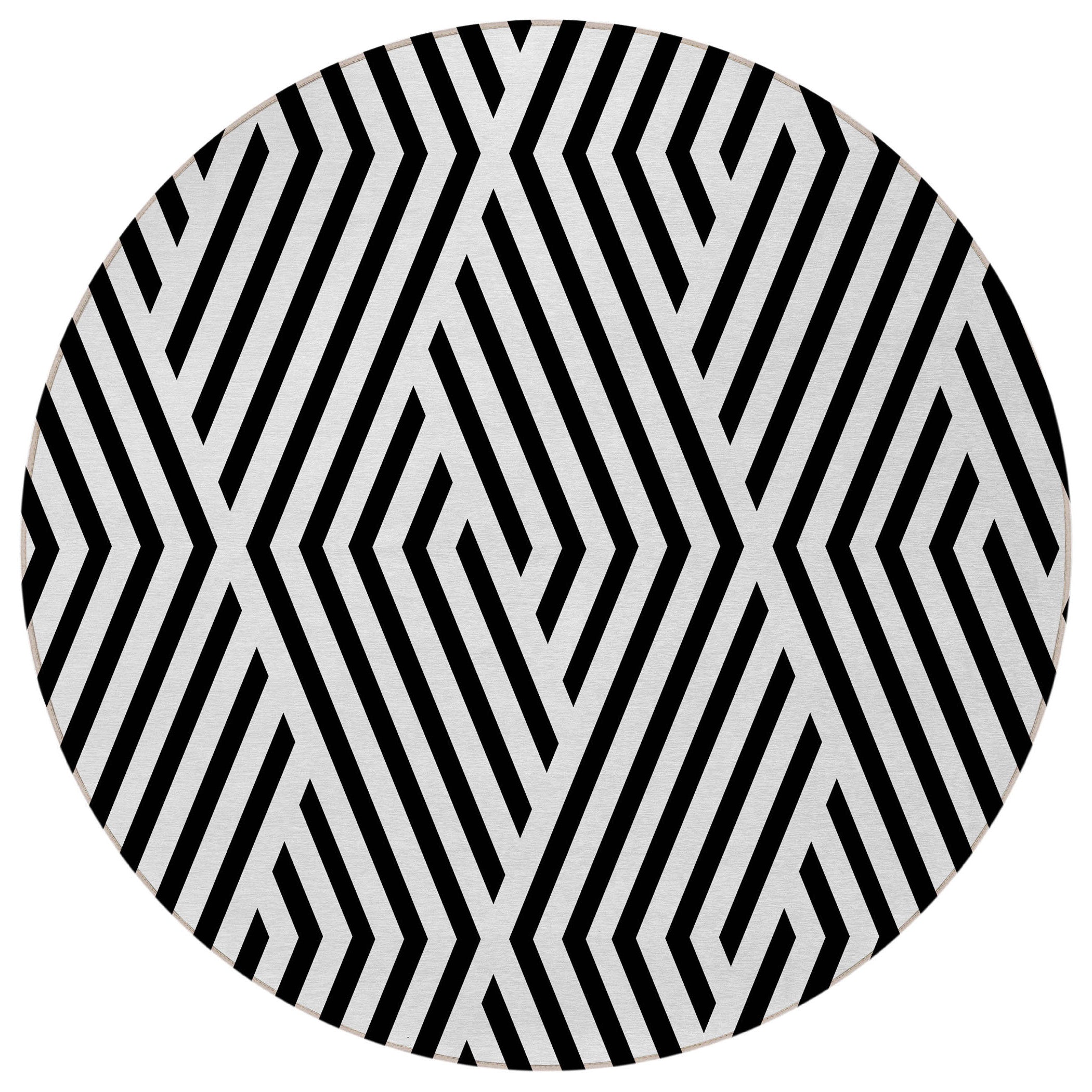 8' Round Black and White Round Geometric Washable Non Skid Indoor Outdoor Area Rug