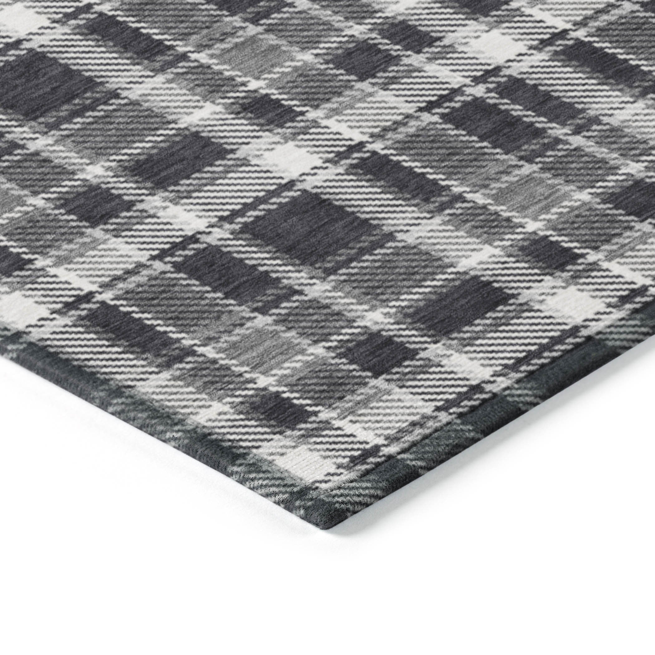 8' Round Black Gray and White Round Plaid Washable Non Skid Indoor Outdoor Area Rug