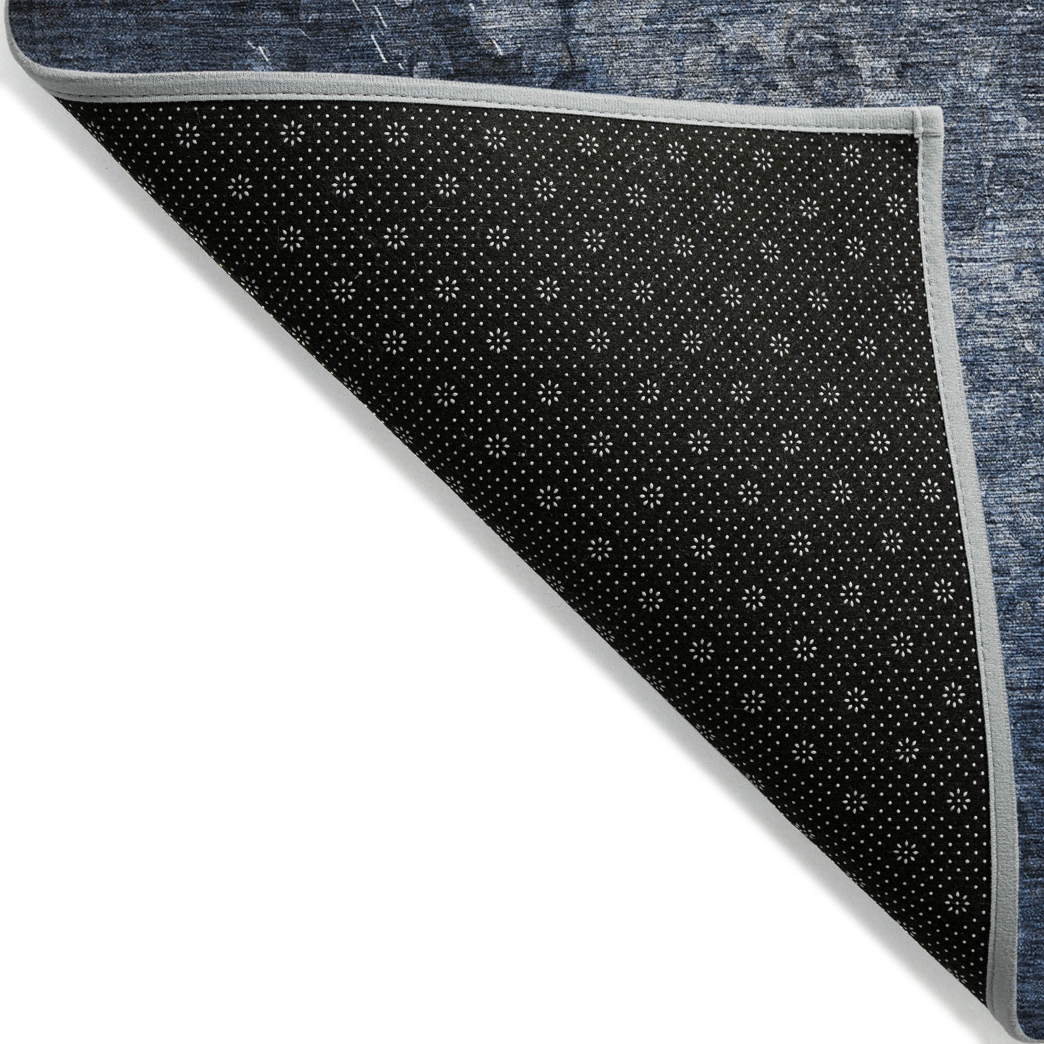 Add some artistry to your room with this 8-foot round blue round washable stain resistant non skid...