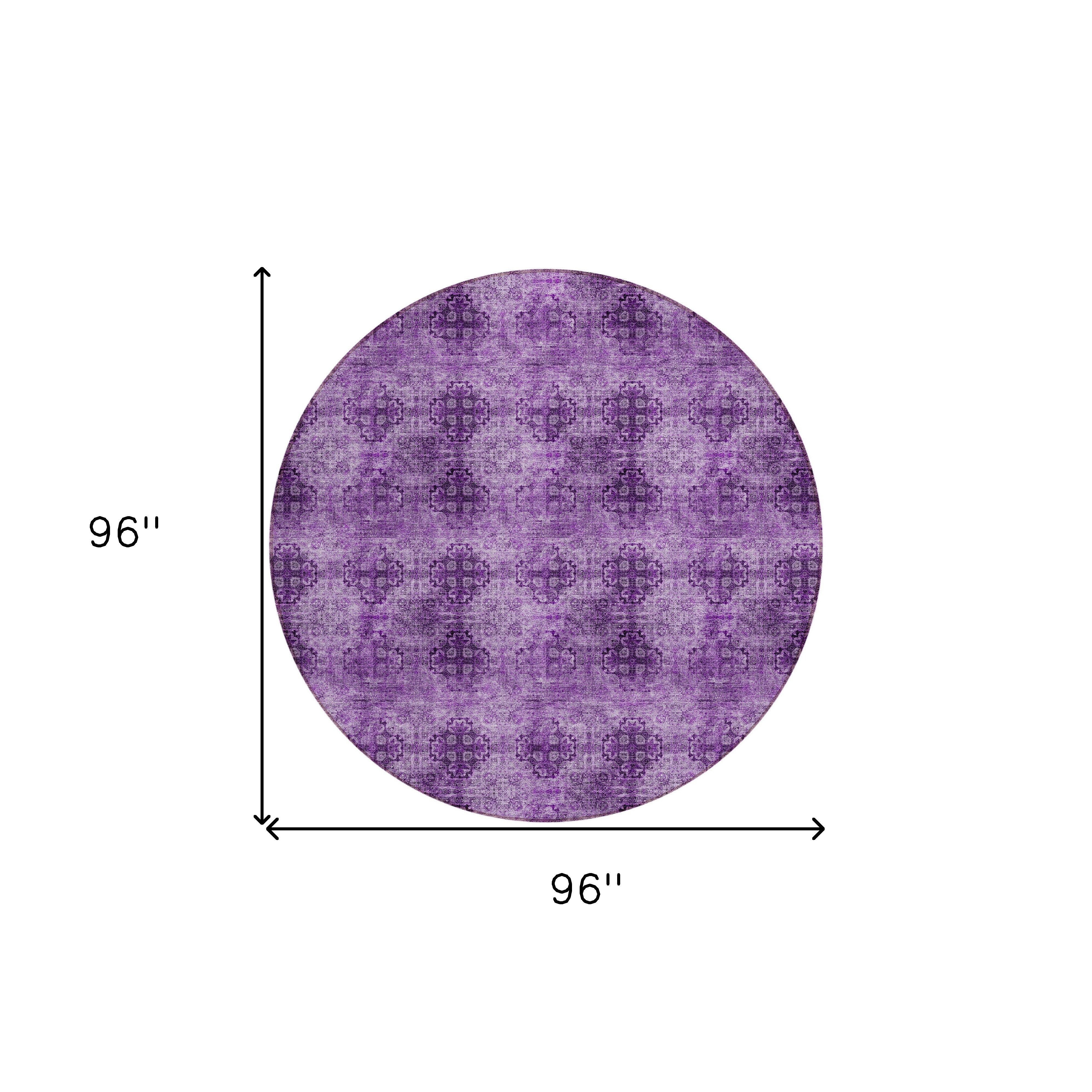 8' Round Eggplant Round Floral Medallion Washable Non Skid Indoor Outdoor Area Rug
