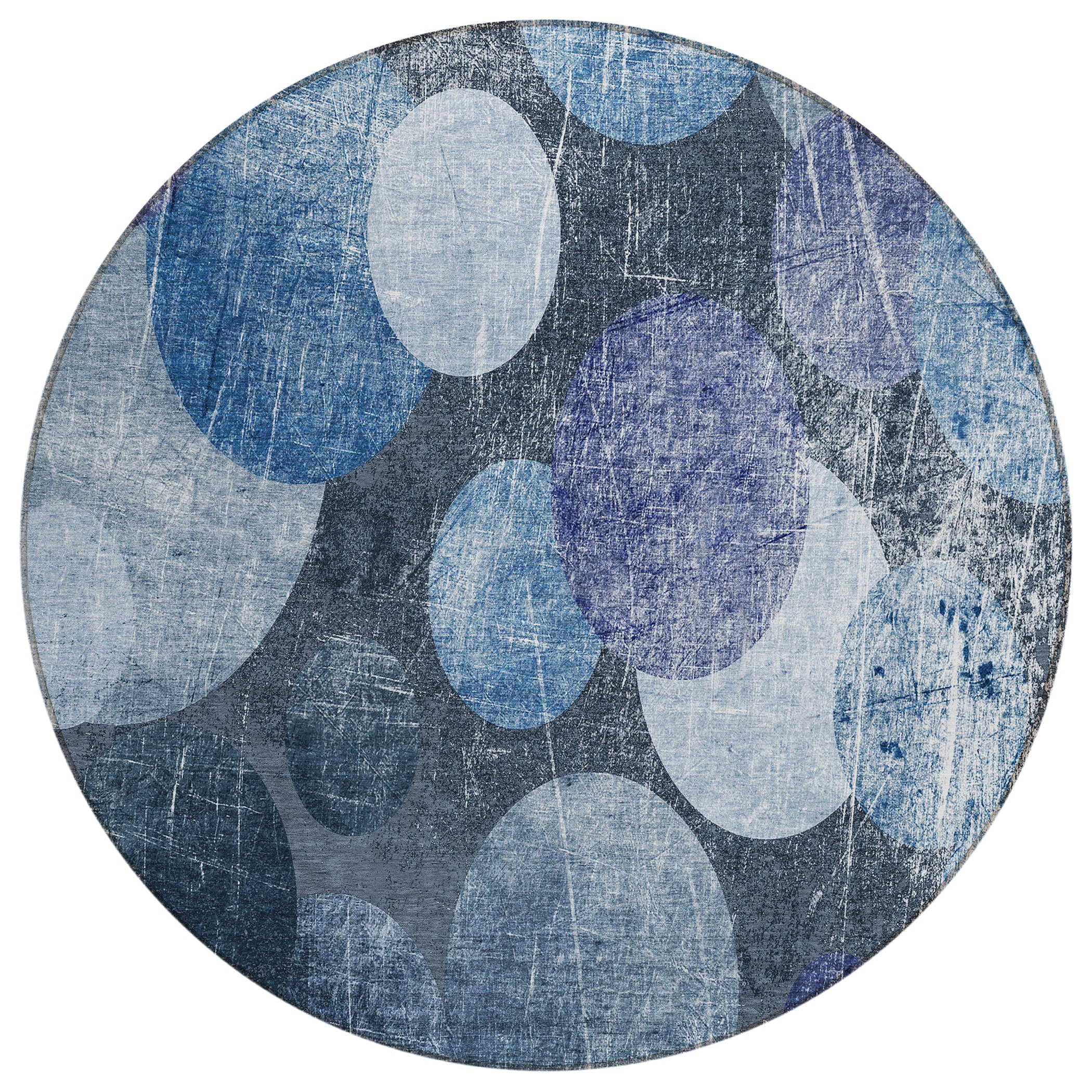 8' Round Gray and Blue Round Abstract Washable Non Skid Indoor Outdoor Area Rug