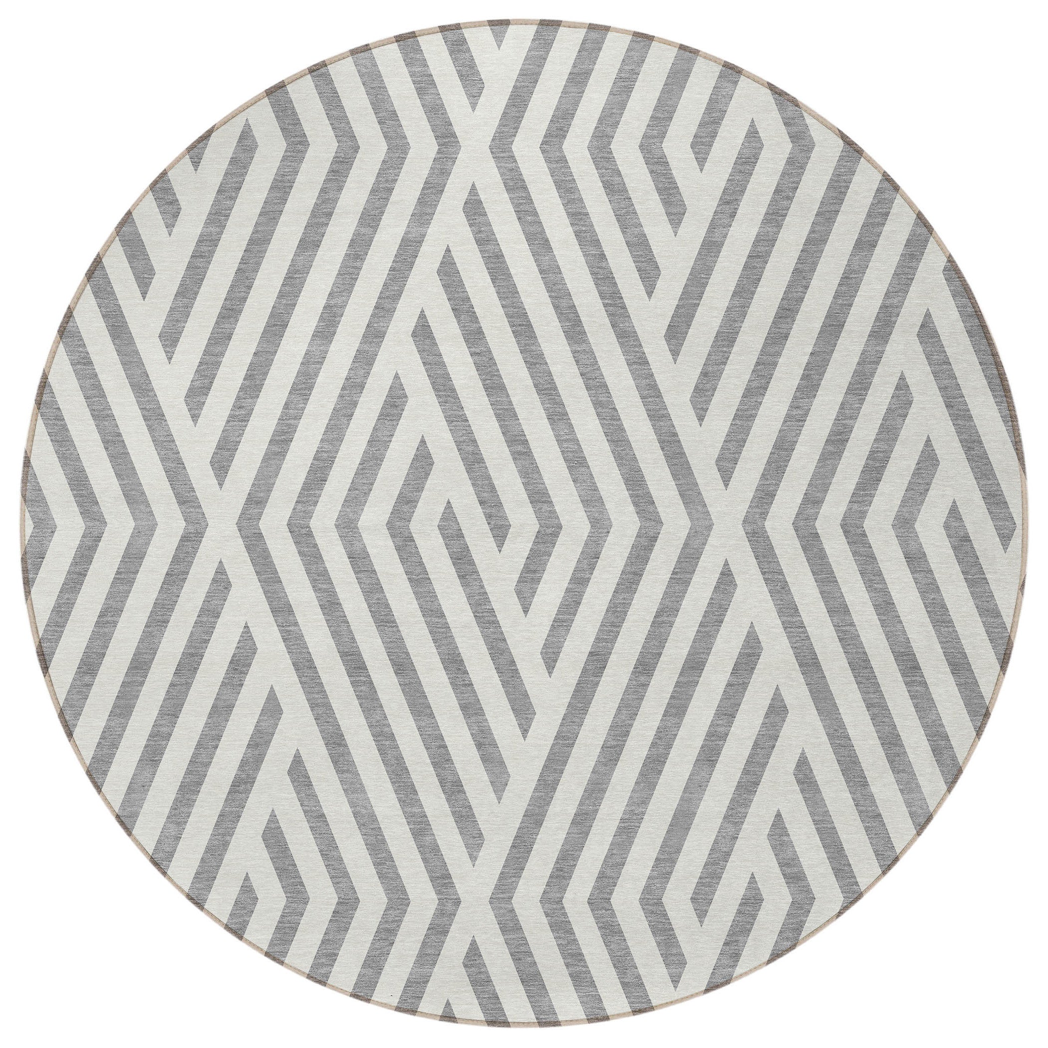 8' Round Gray and Ivory Round Geometric Washable Non Skid Indoor Outdoor Area Rug