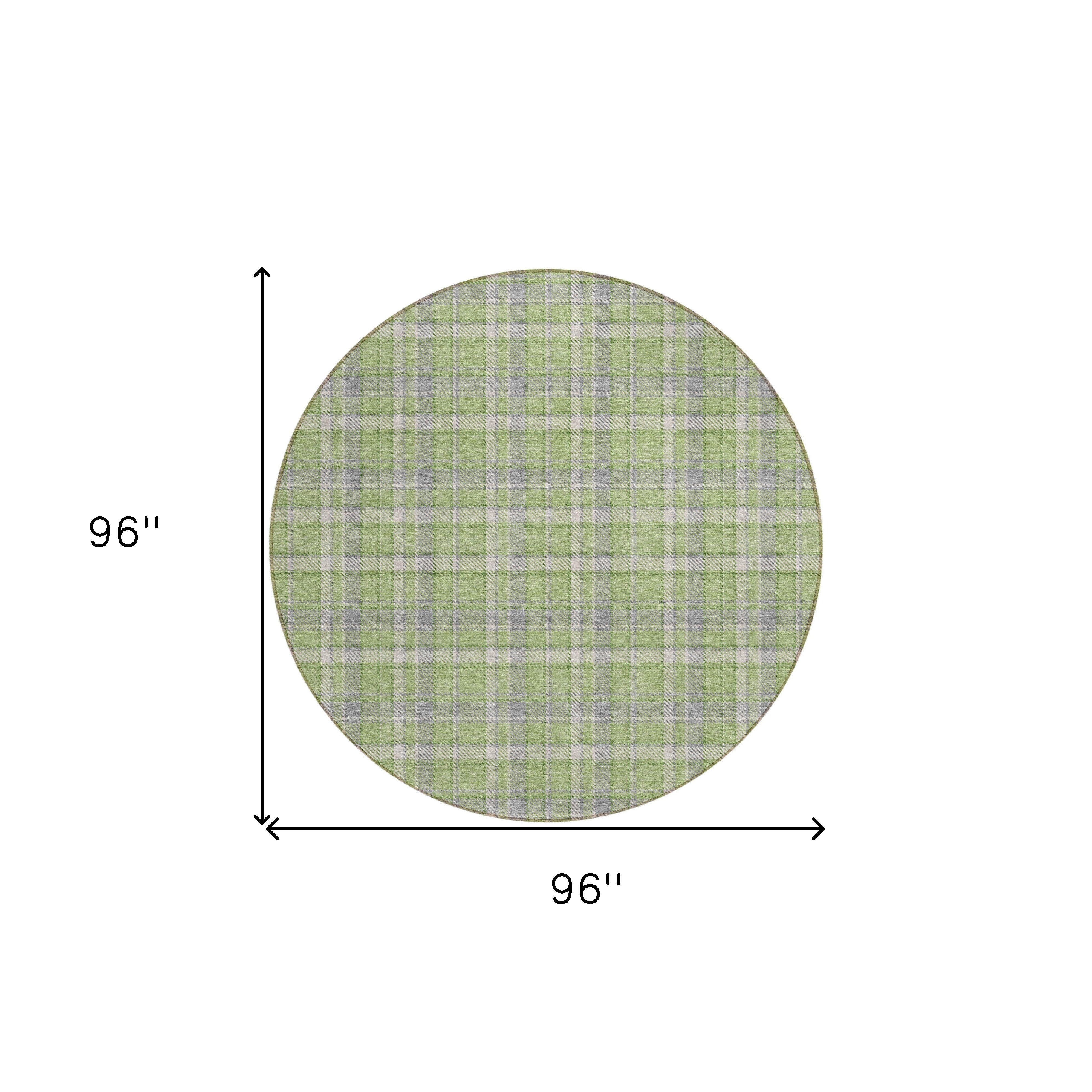 8' Round Green and Gray Round Plaid Washable Non Skid Indoor Outdoor Area Rug