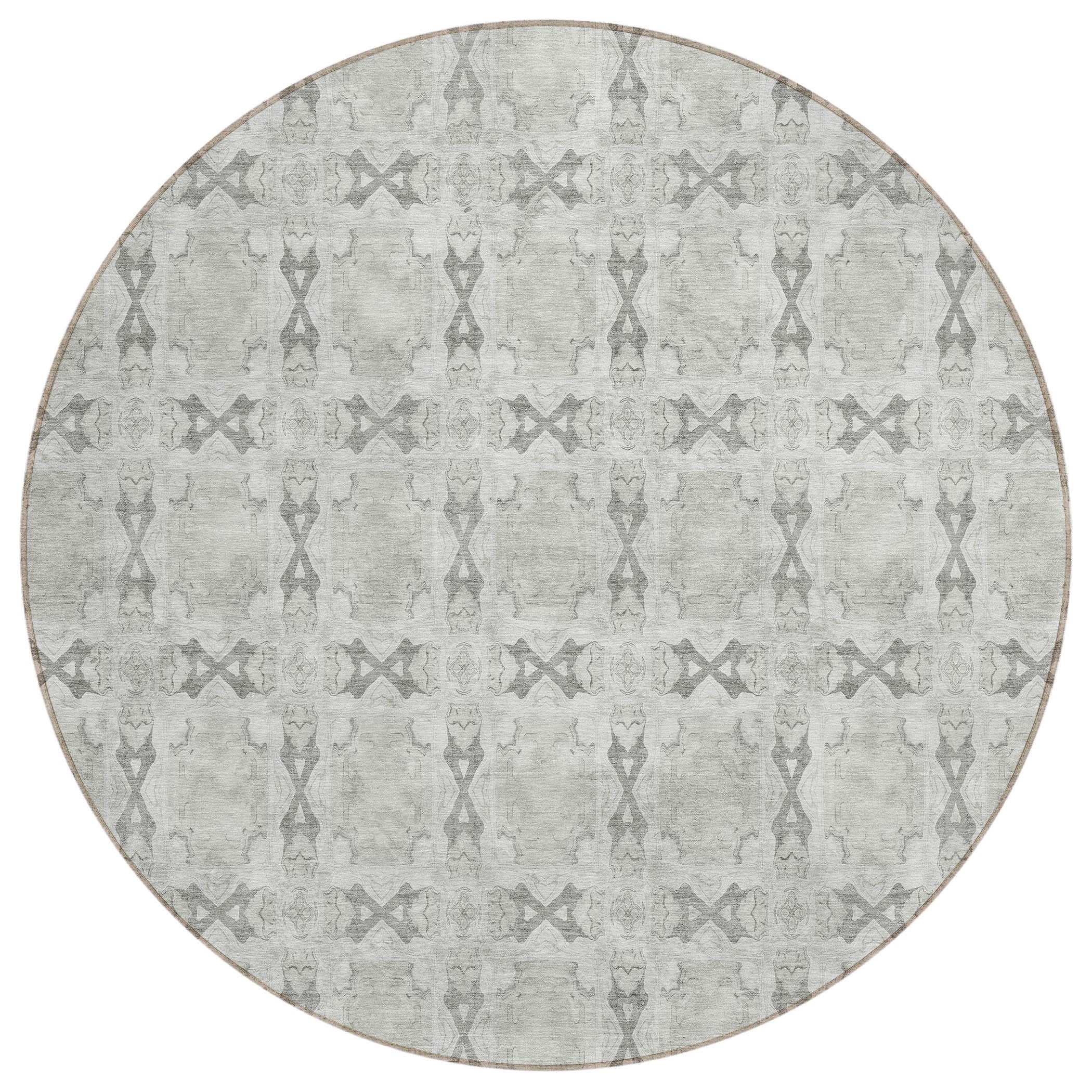 8' Round Ivory and Gray Round Floral Medallion Washable Non Skid Indoor Outdoor Area Rug