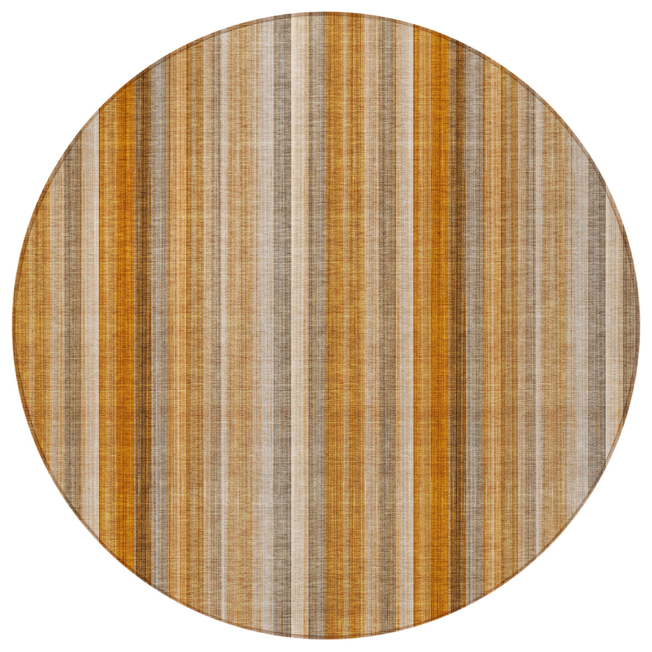 8' Round Orange Ivory and Gray Round Striped Washable Non Skid Indoor Outdoor Area Rug