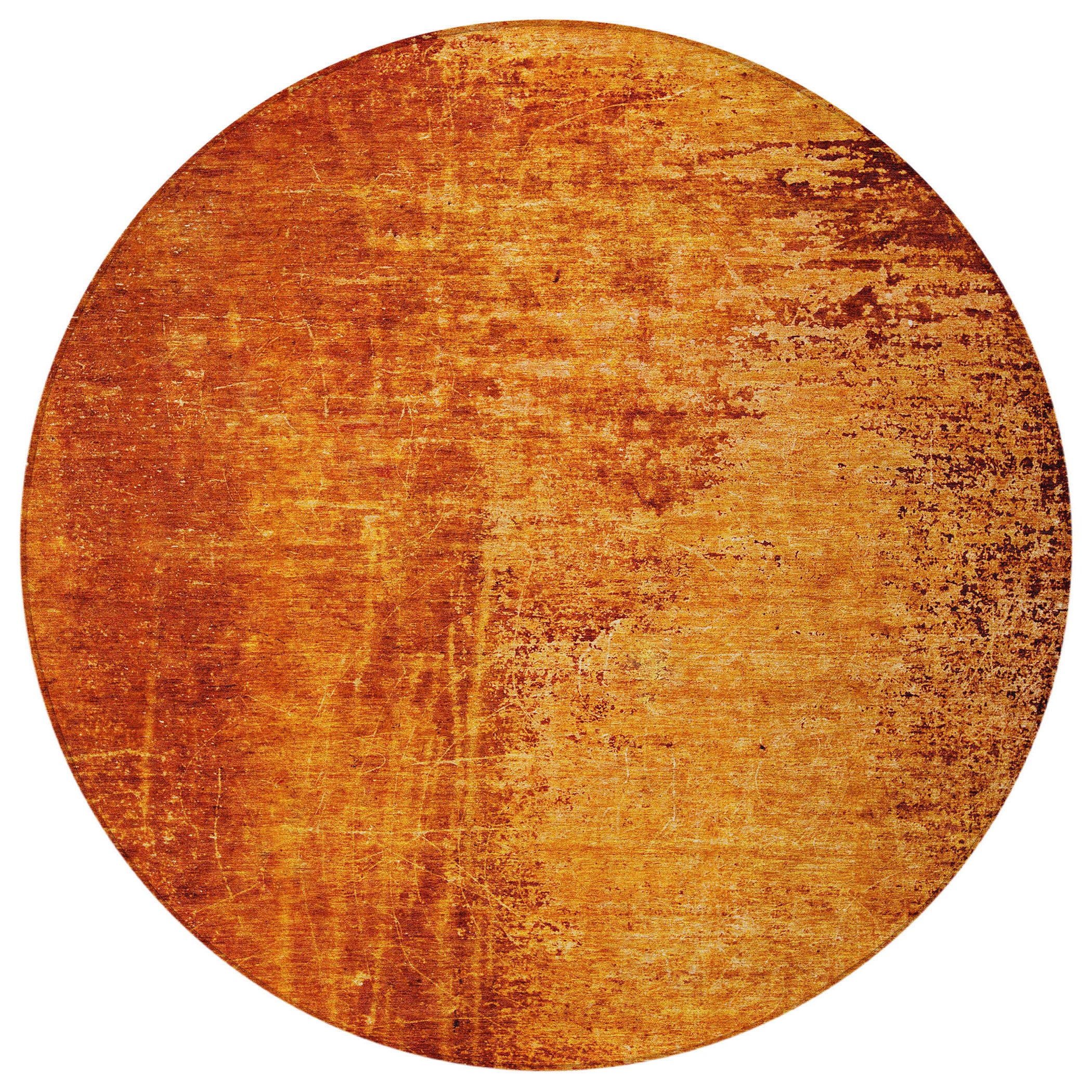 Add some artistry to your room with this 8-foot round orange round abstract washable stain resistant non...