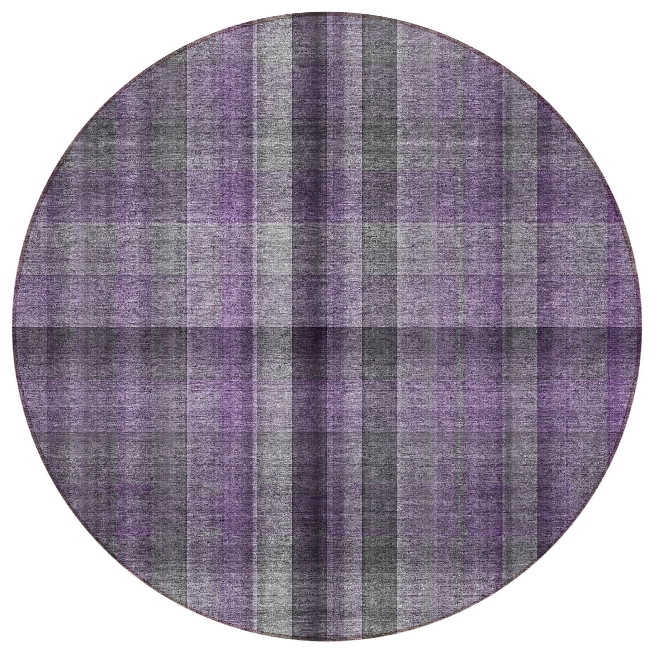 8' Round Purple Round Plaid Washable Non Skid Indoor Outdoor Area Rug