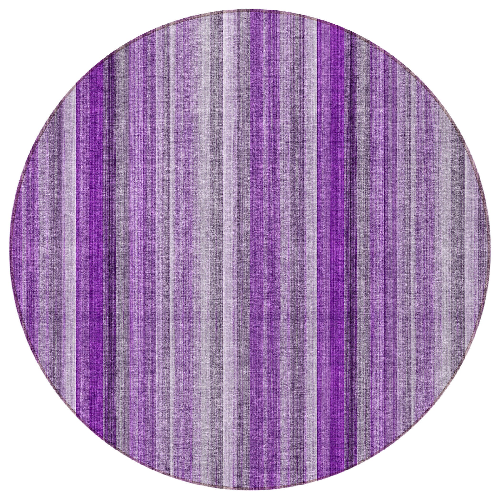 Set an inviting tone in your space with this 8-foot round purple round striped washable stain resistant...