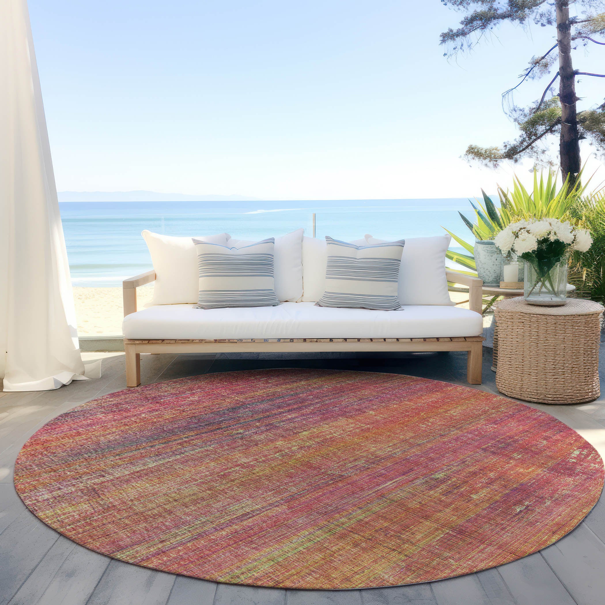 8' Round Red and Orange Round Striped Washable Non Skid Indoor Outdoor Area Rug