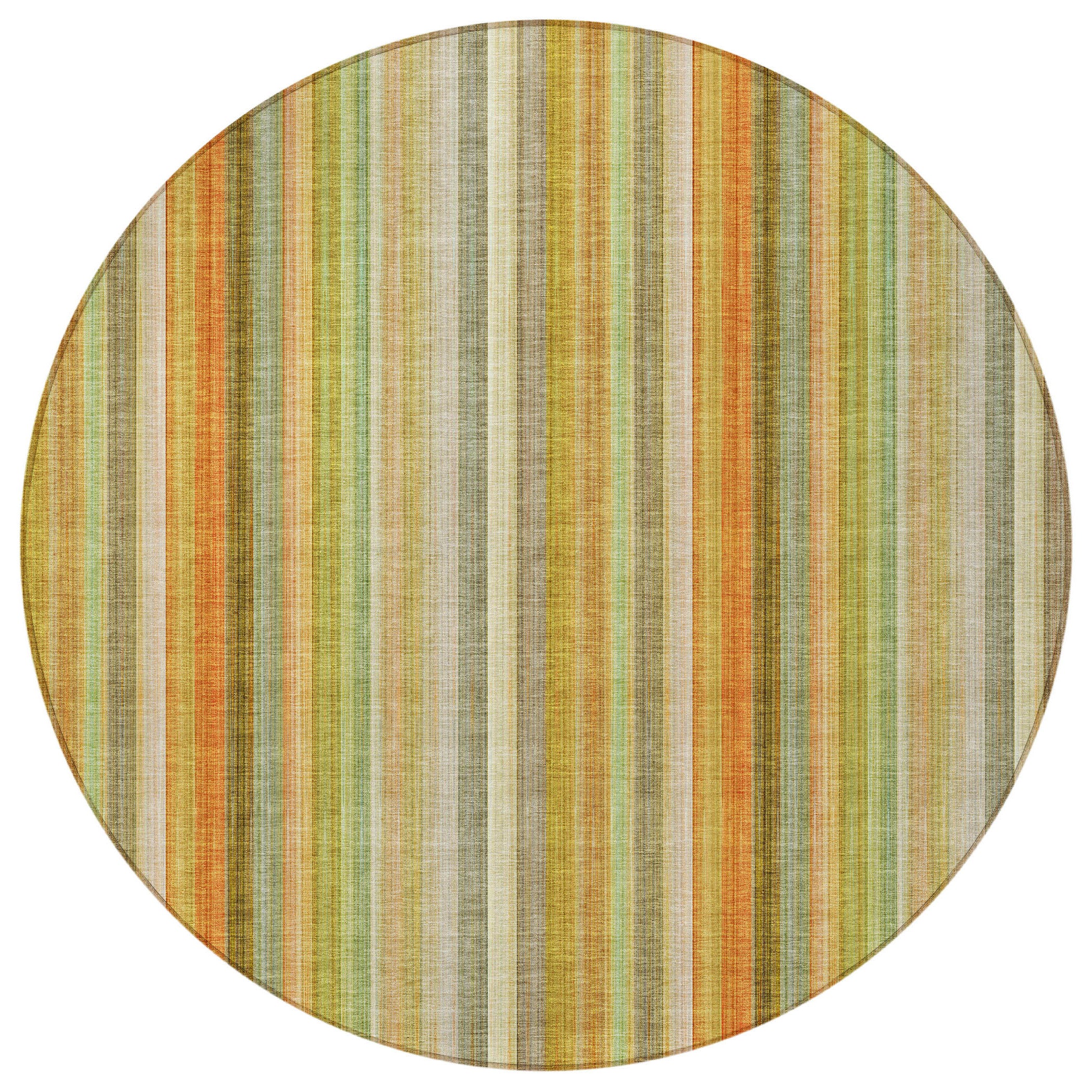 8' Round Tan Orange and Green Round Striped Washable Non Skid Indoor Outdoor Area Rug